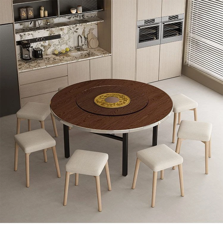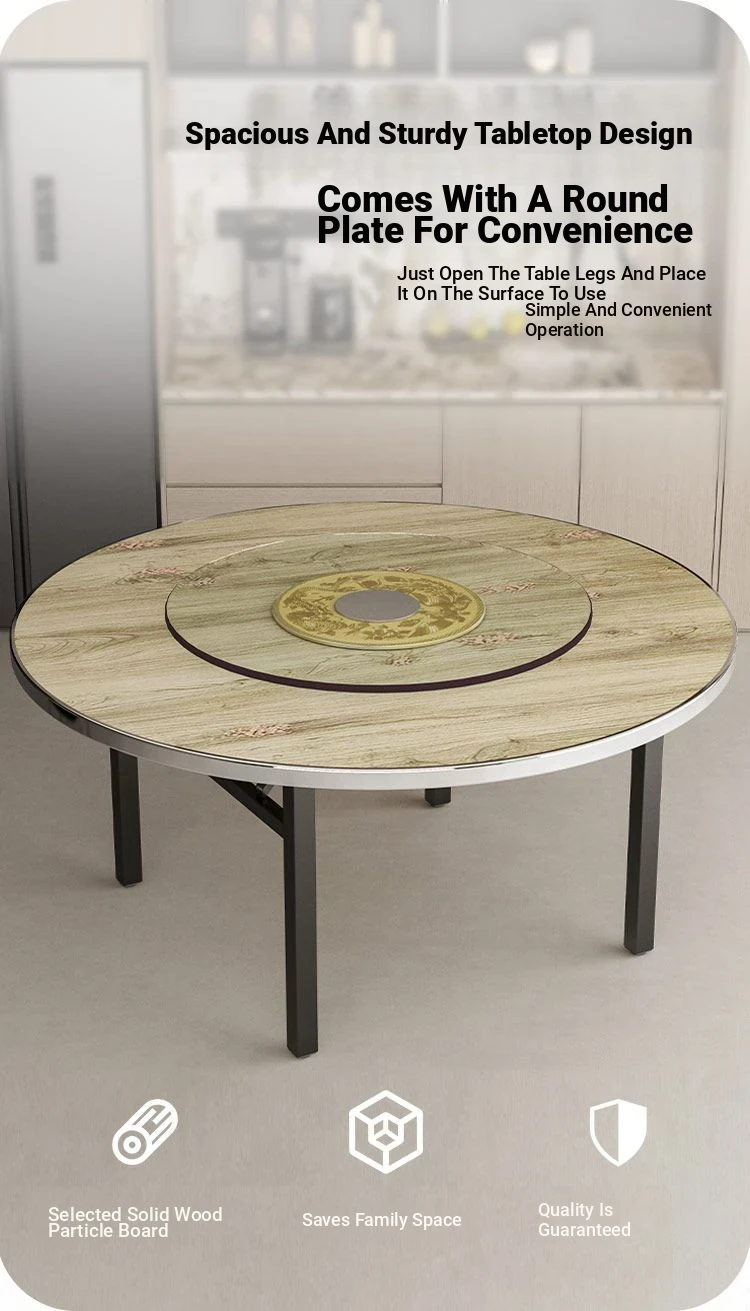 "Solid Wood Pine Round Dining Table - Easy Folding Design for Home & Restaurants, Seats Up to 10 People - Economical and Stylish Solution for Your Dining Needs"