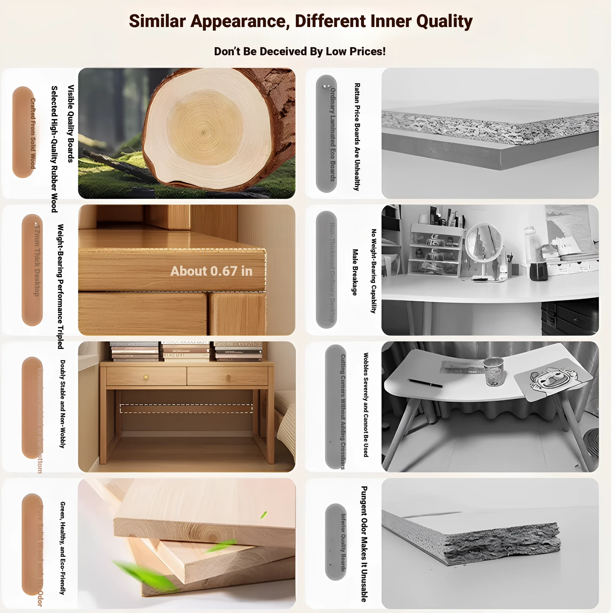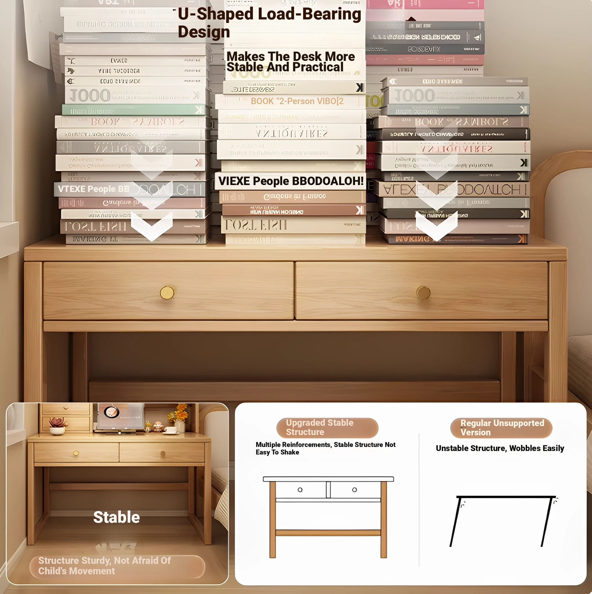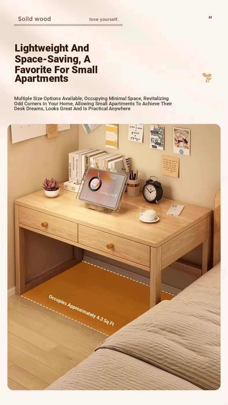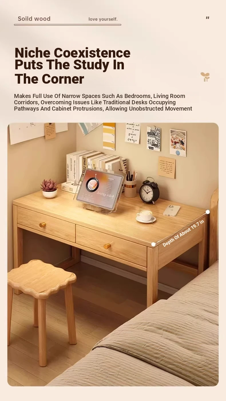 Solid Wood Study Desk - Versatile Writing and Computer Table for Students and Adults, Perfect for Bedroom and Home Office Use
