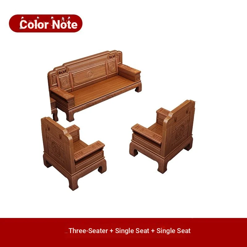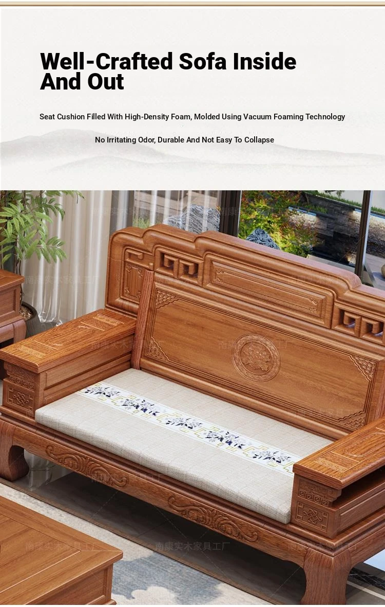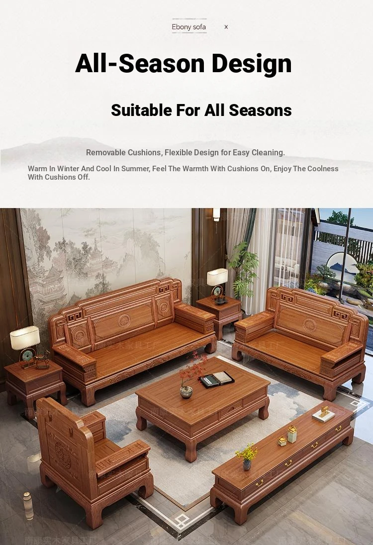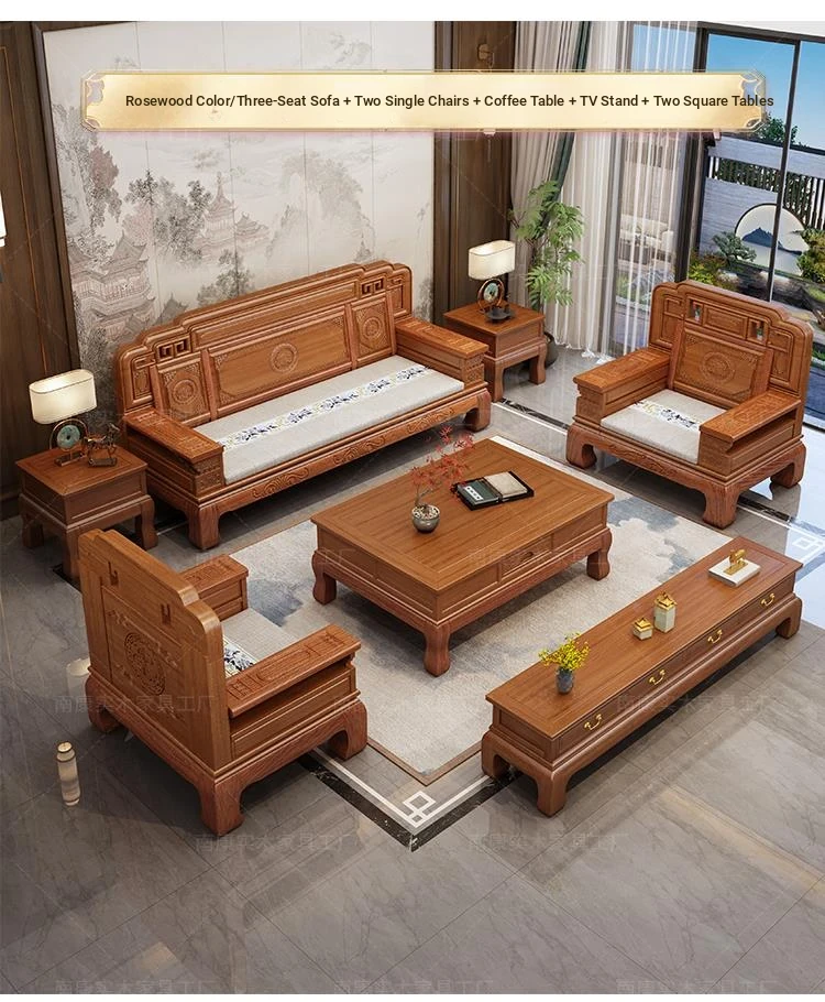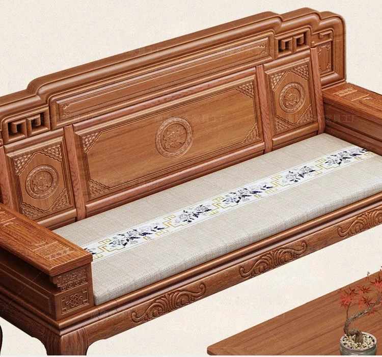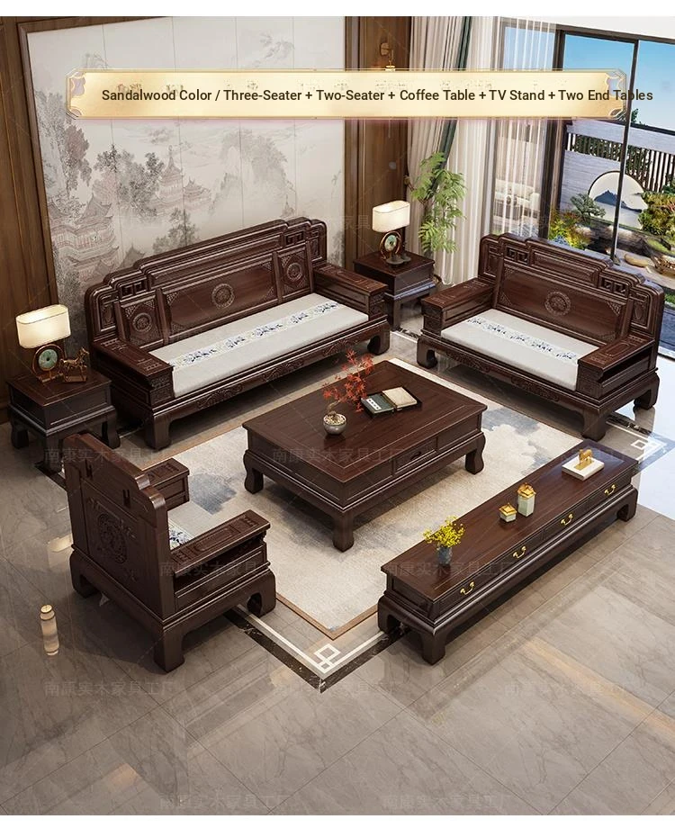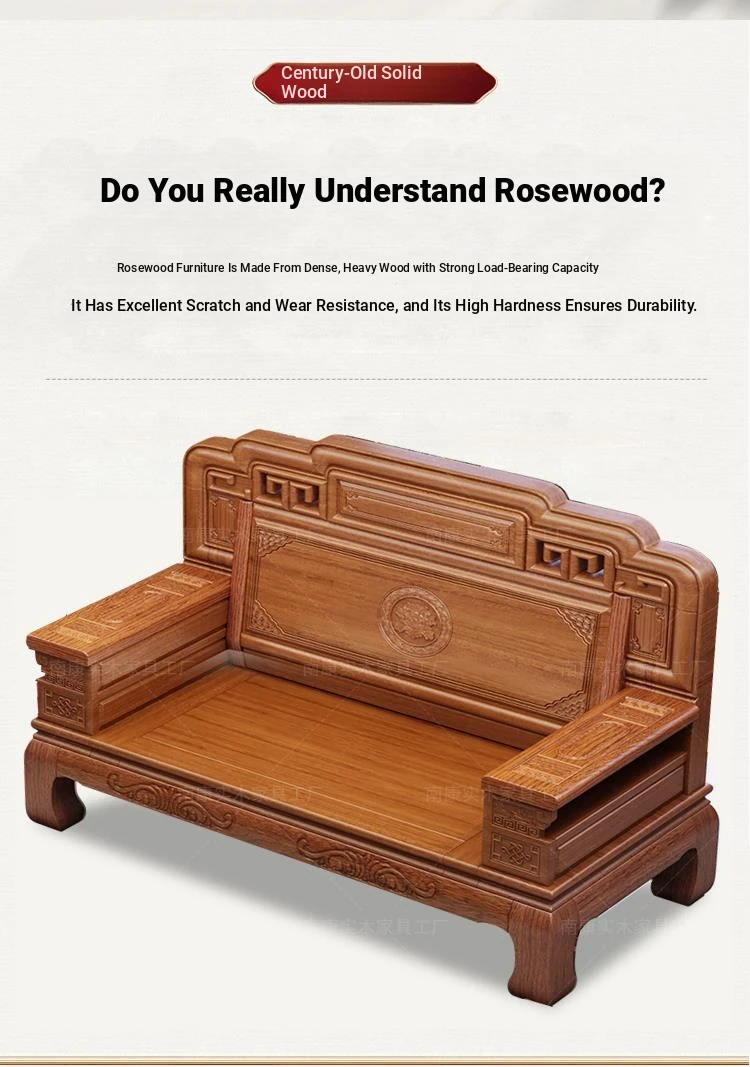 South American Rosewood New Chinese Style Solid Wood Sofa - Classic Ming and Qing Antique Carved Design, Versatile for Winter and Summer, Perfect for Small Spaces