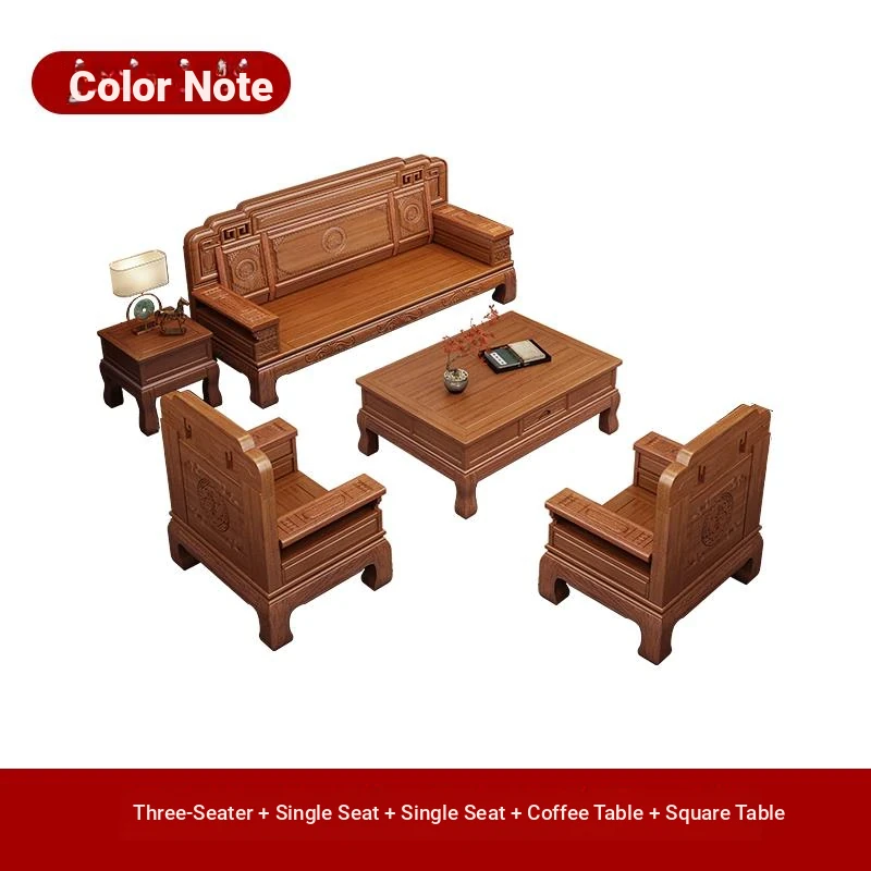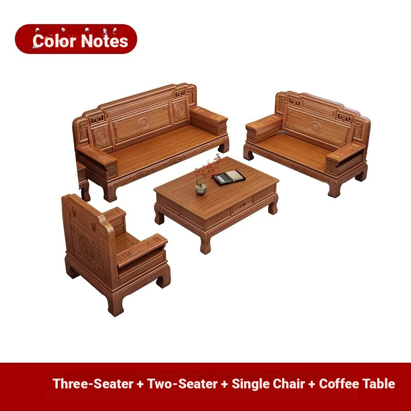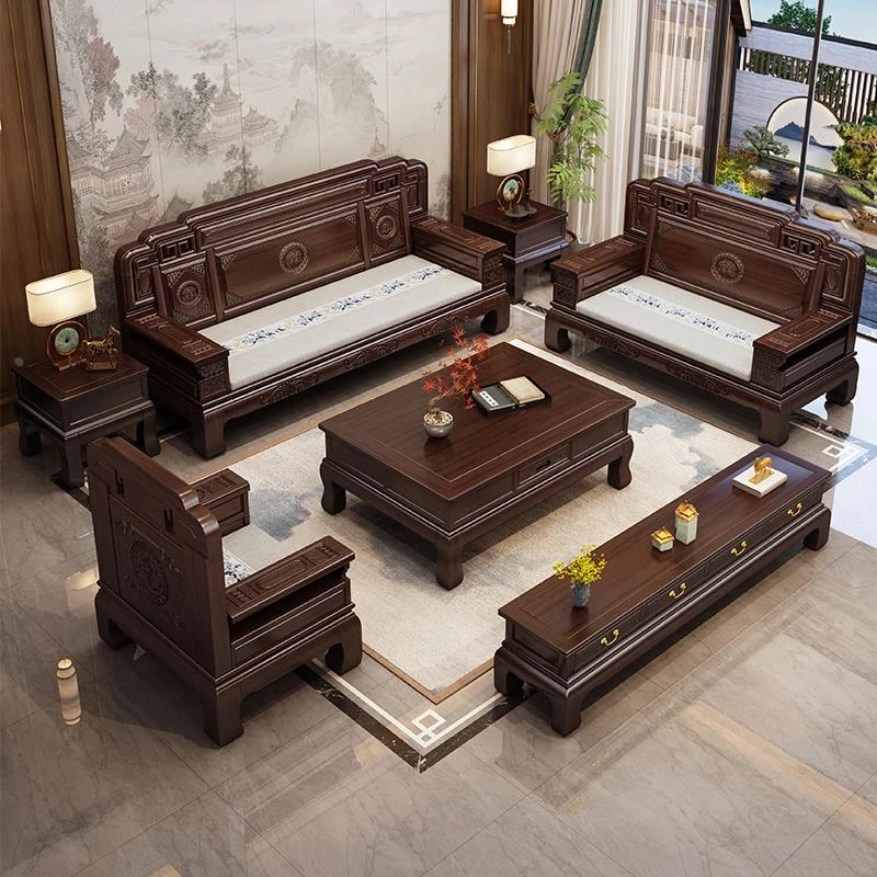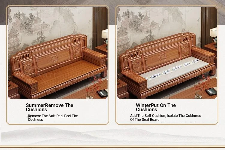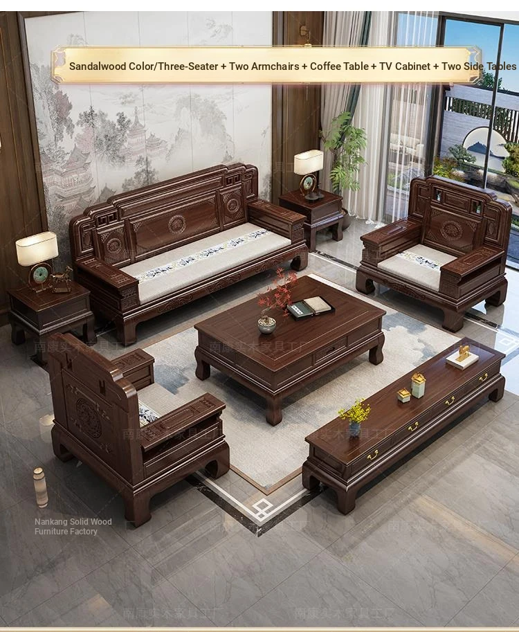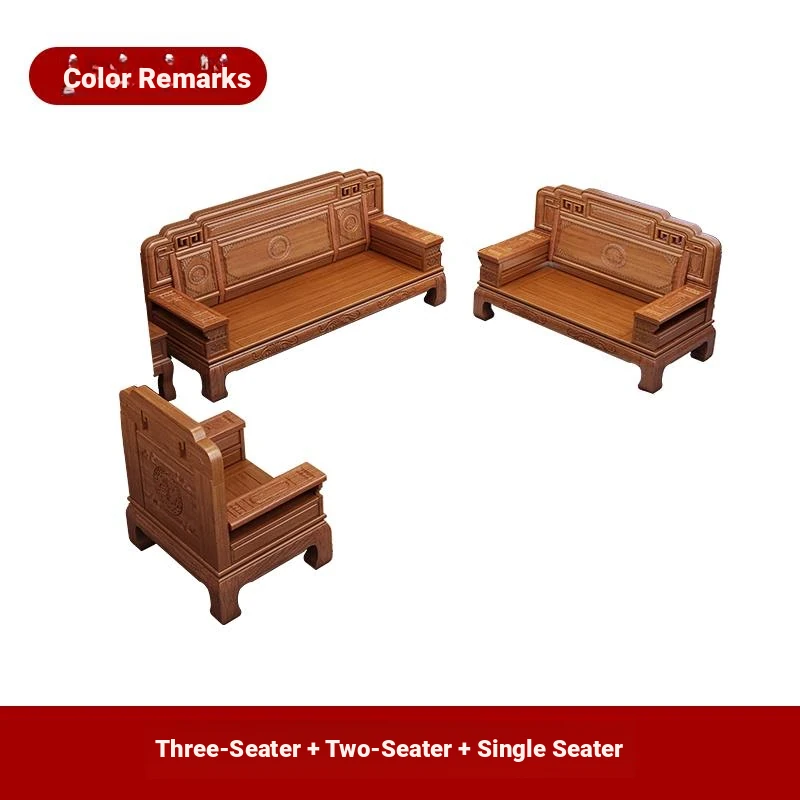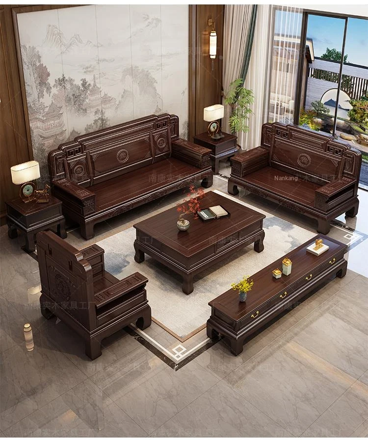 South American Rosewood New Chinese Style Solid Wood Sofa - Classic Ming and Qing Antique Carved Design, Versatile for Winter and Summer, Perfect for Small Spaces
