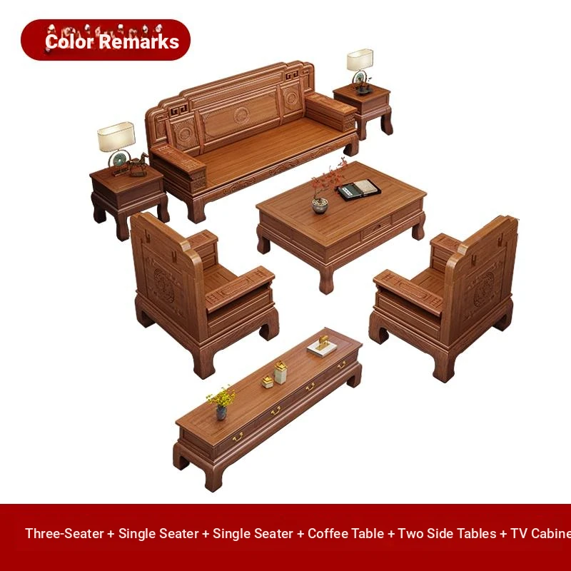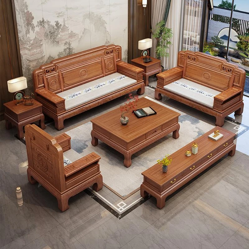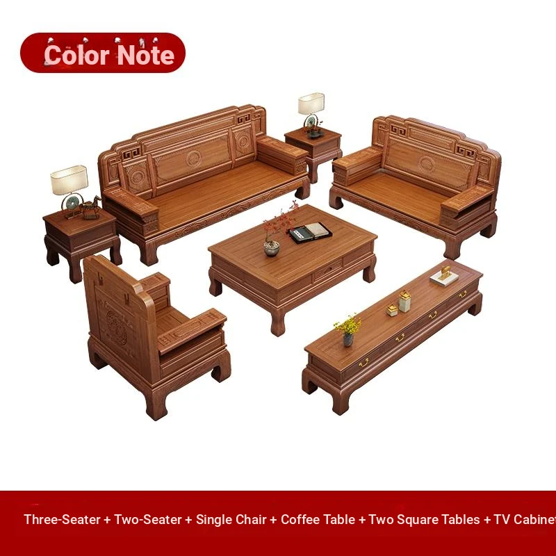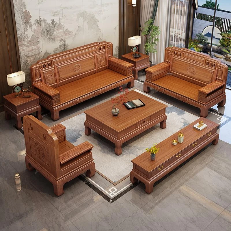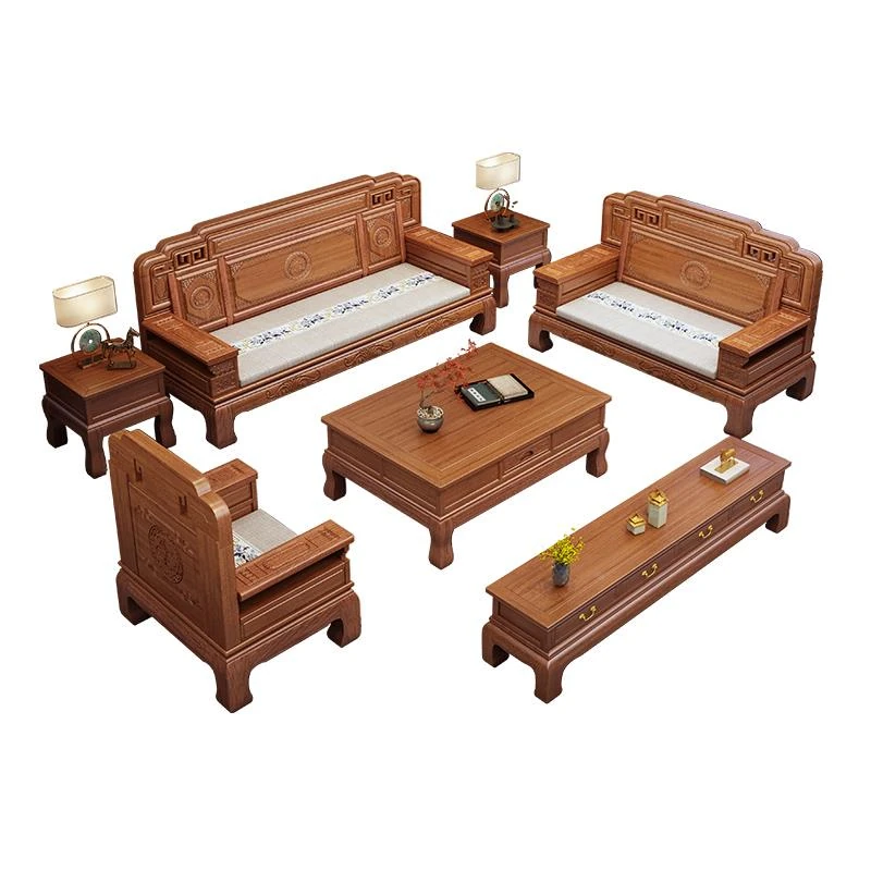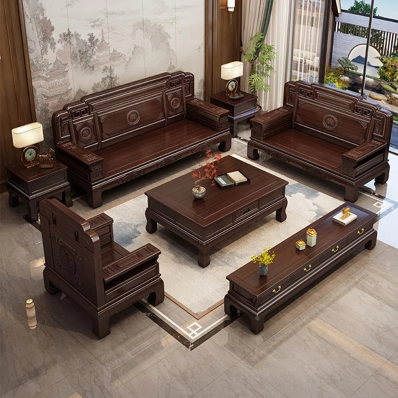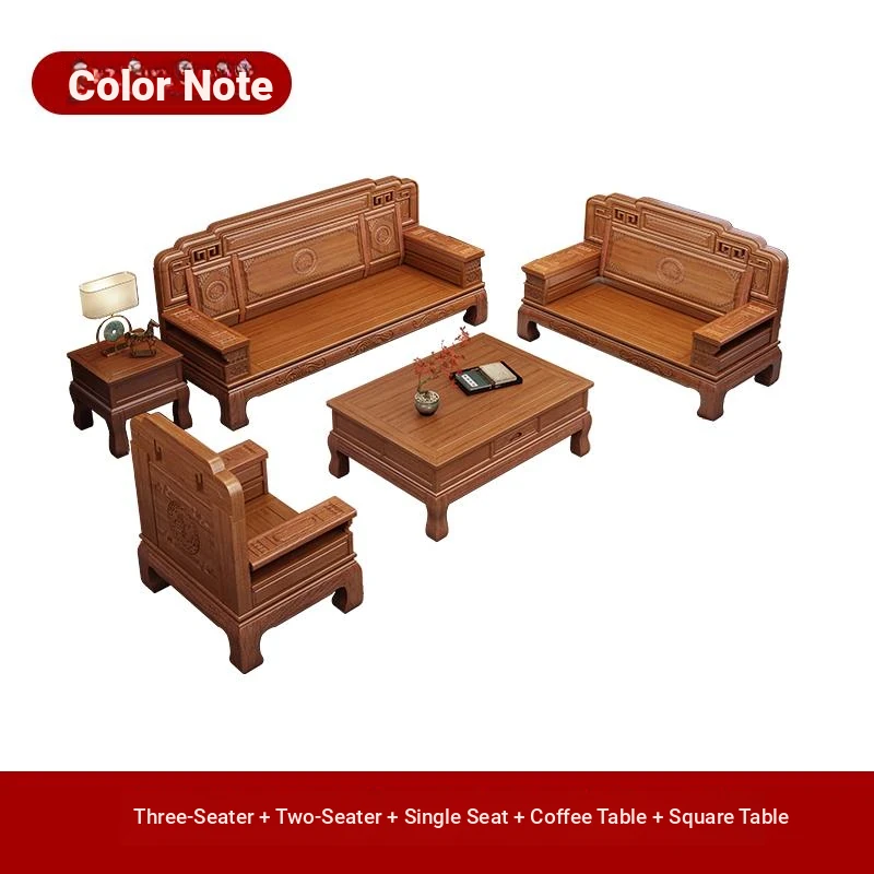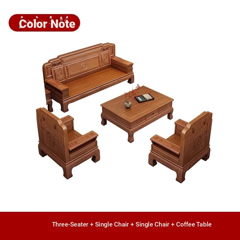 South American Rosewood New Chinese Style Solid Wood Sofa - Classic Ming and Qing Antique Carved Design, Versatile for Winter and Summer, Perfect for Small Spaces