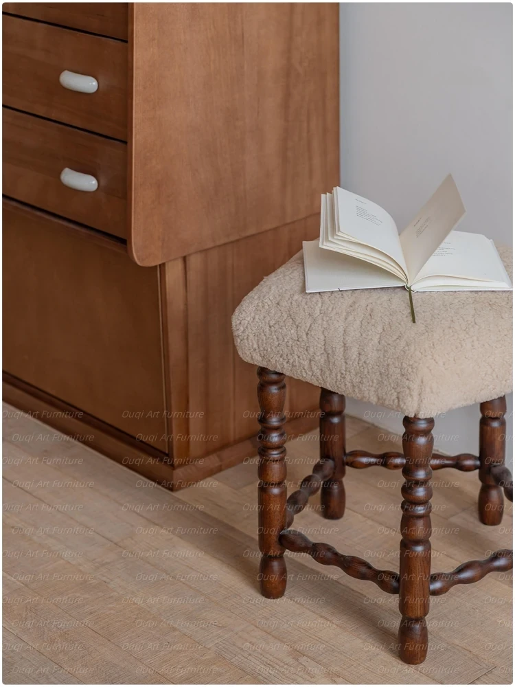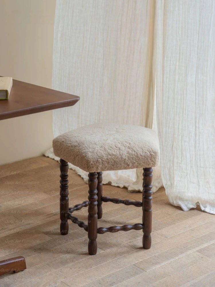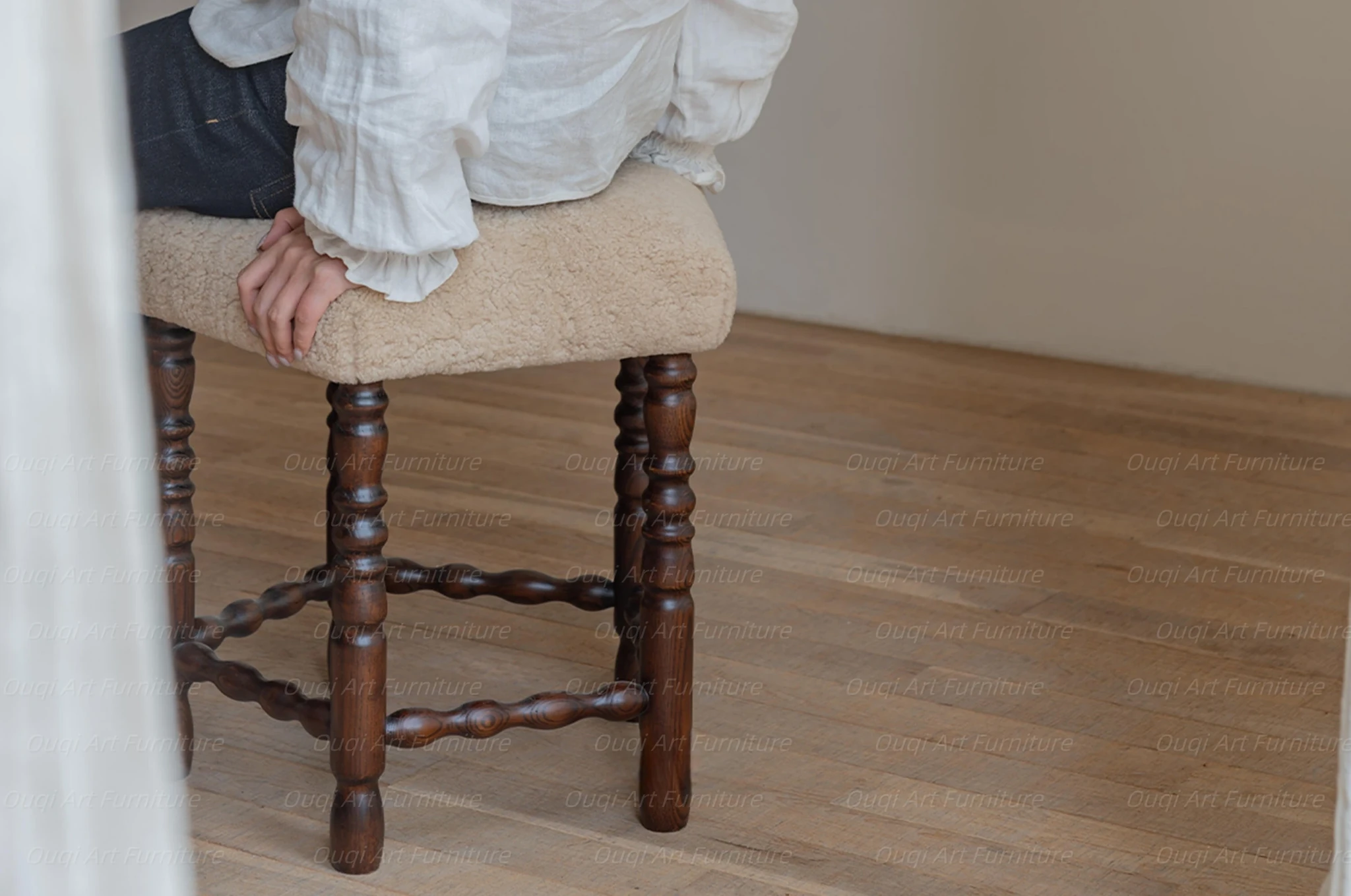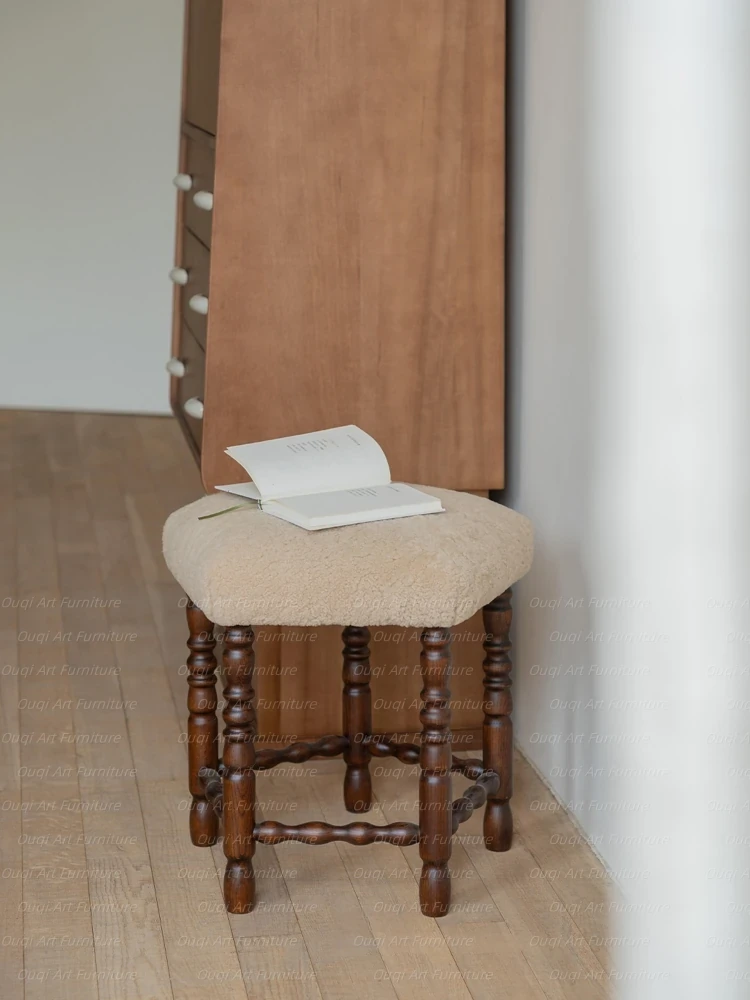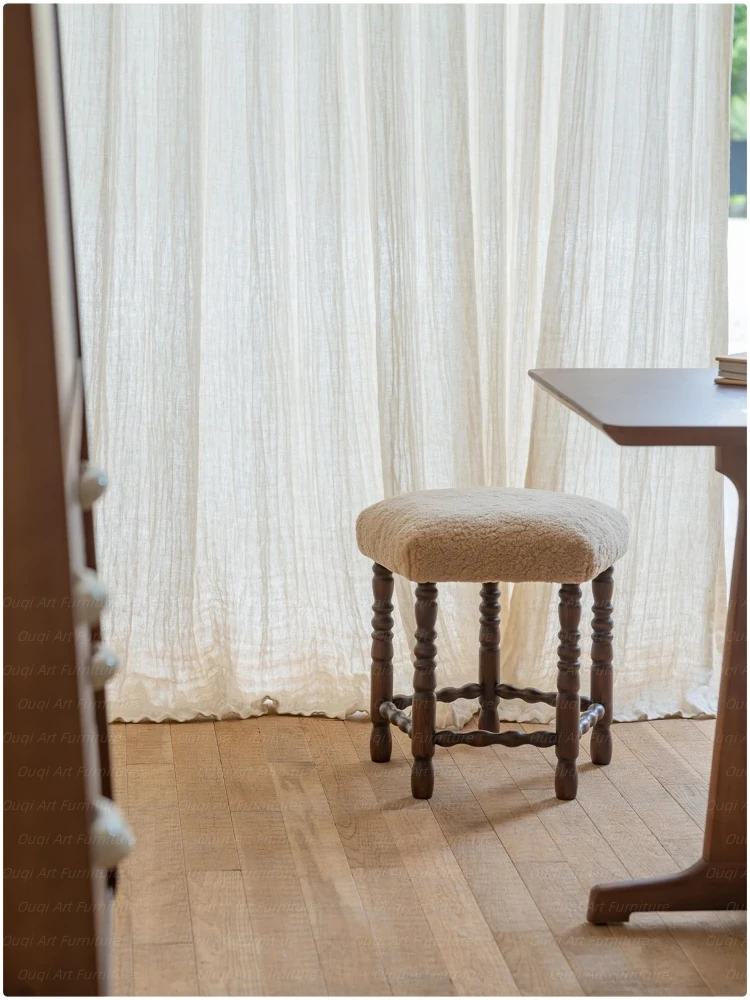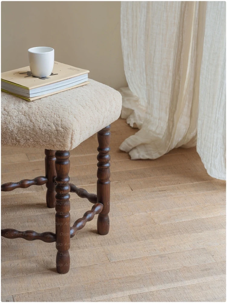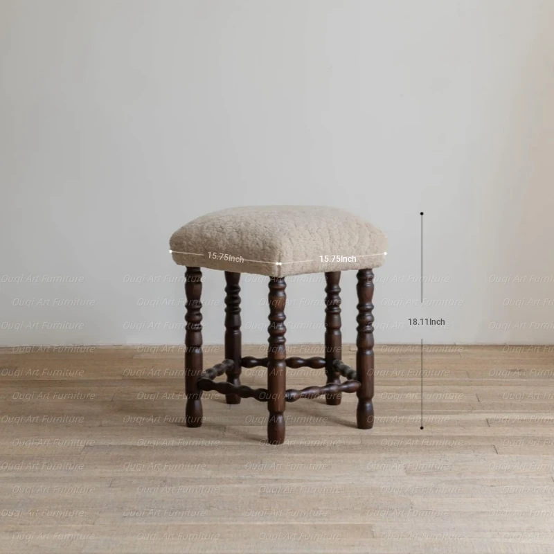 Starry Stool | Vintage Solid Wood Makeup Vanity Princess Stool with Soft Cushion for Bedroom, Home Entrance, and Shoe Changing.