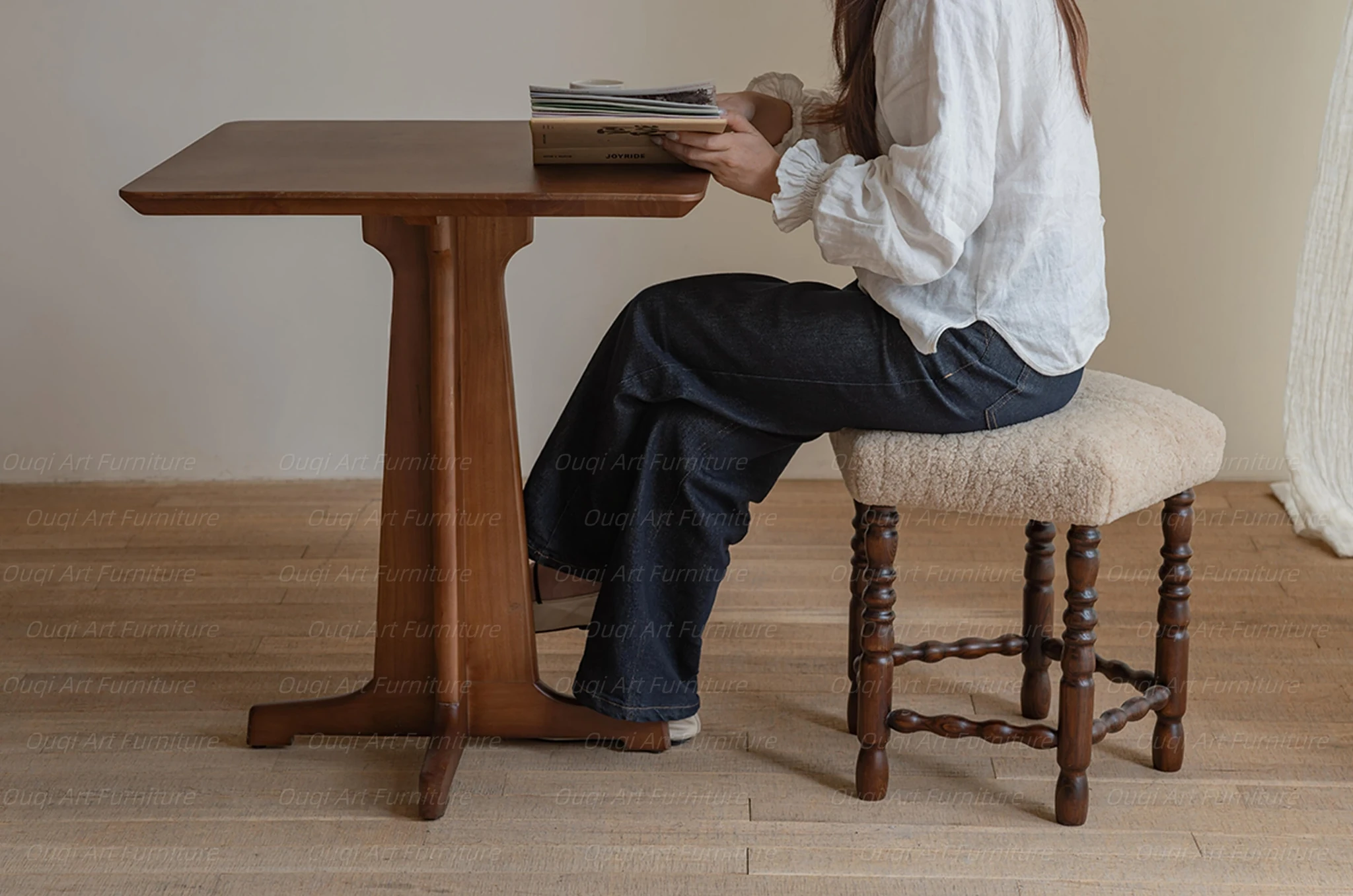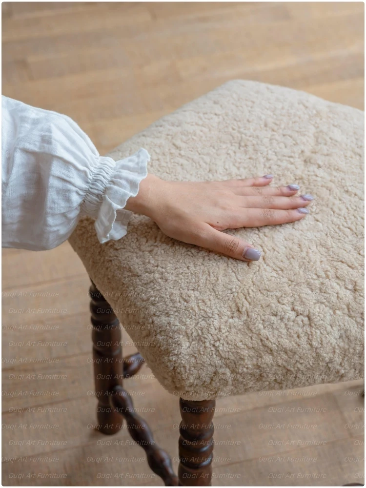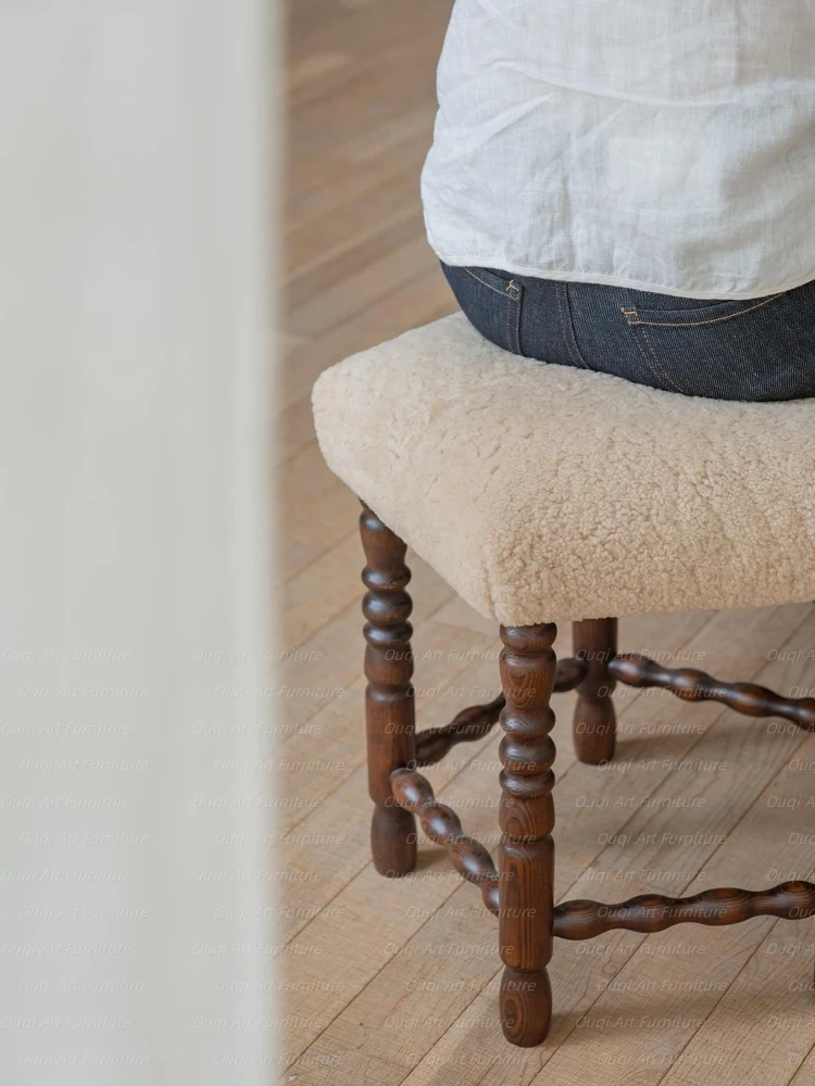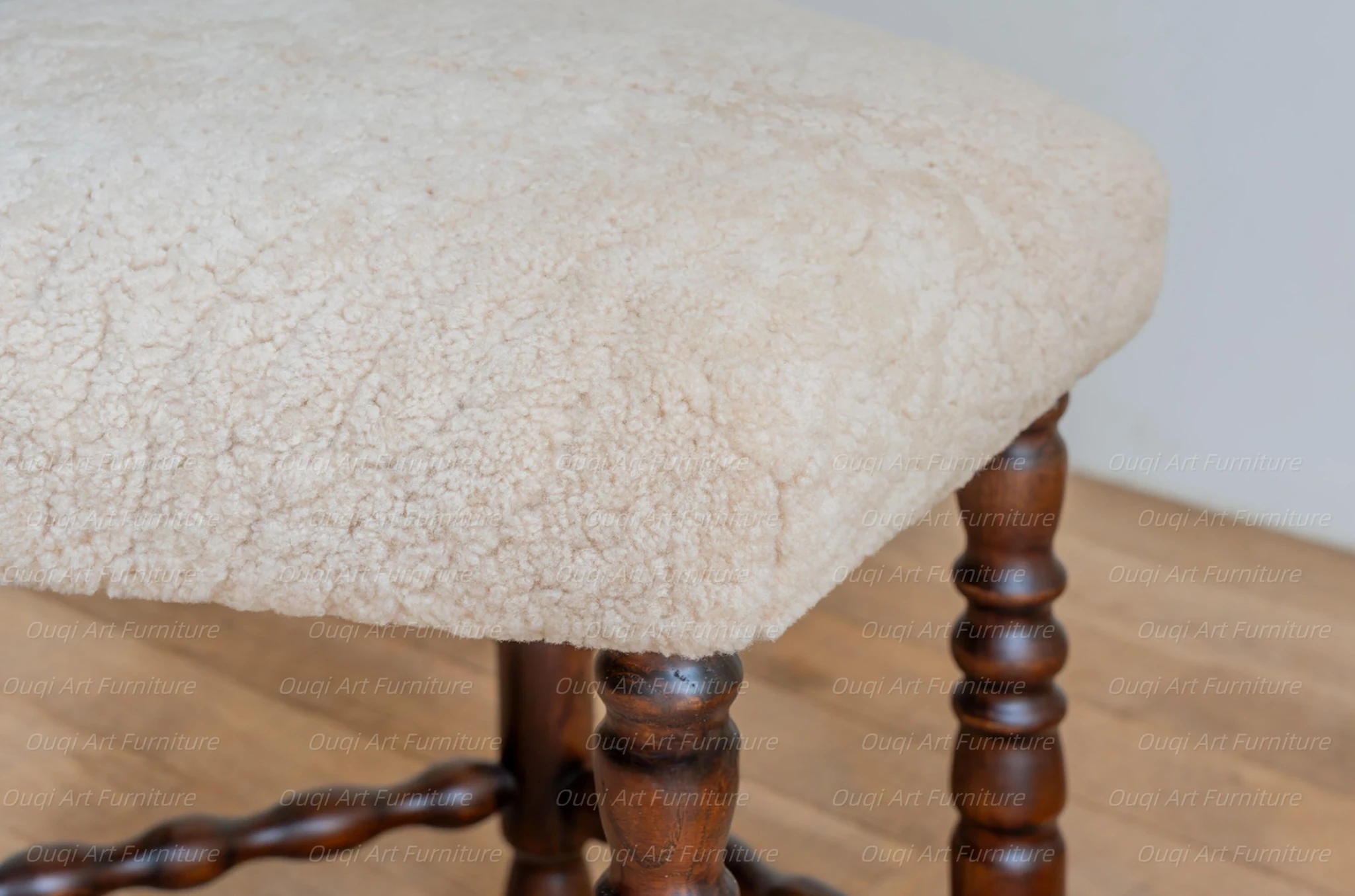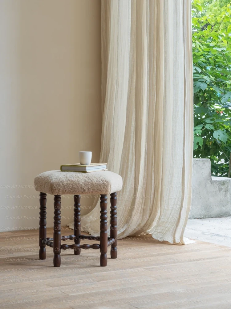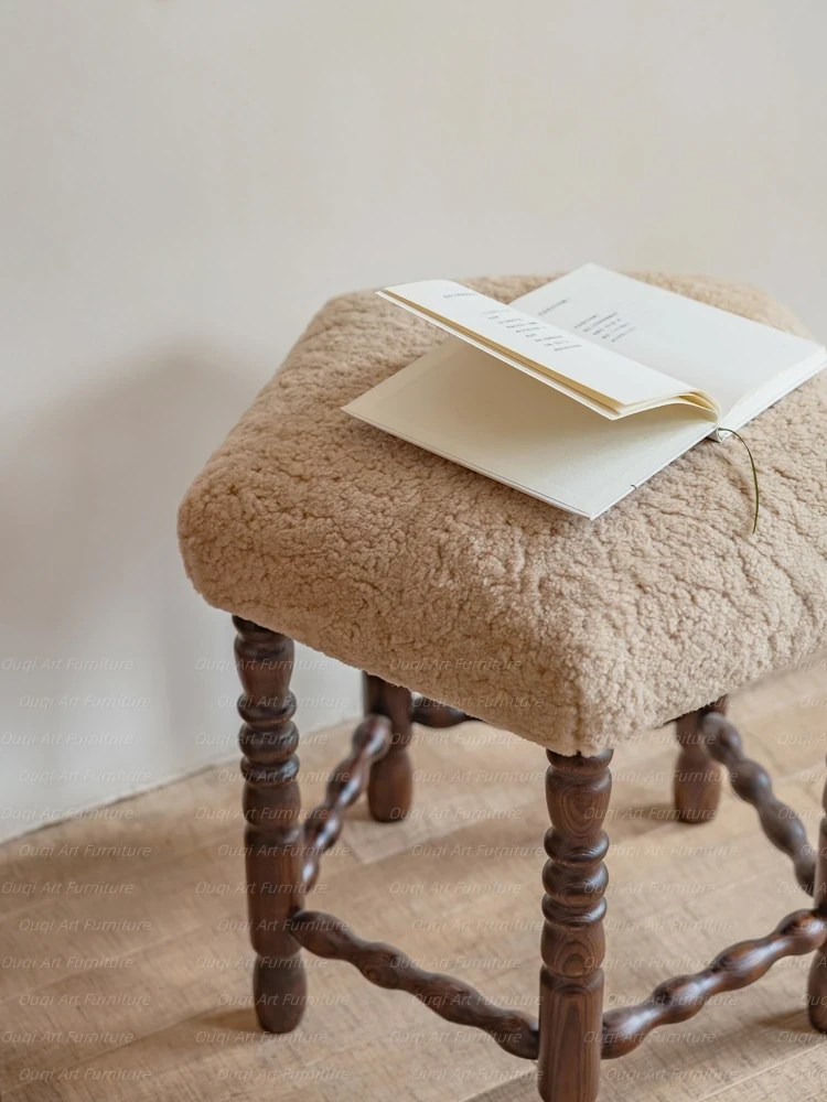Starry Stool | Vintage Solid Wood Makeup Vanity Princess Stool with Soft Cushion for Bedroom, Home Entrance, and Shoe Changing.