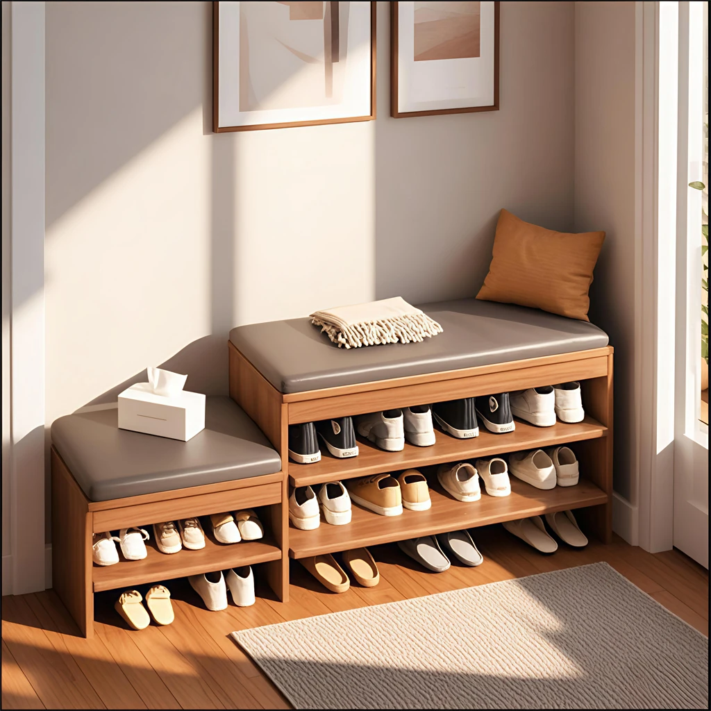 Stylish Entryway Shoe Rack with Bench for Family - Space-Saving, Multi-Tier Narrow Storage Cabinet for Indoor Use, Perfect for Organizing Shoes by the Door