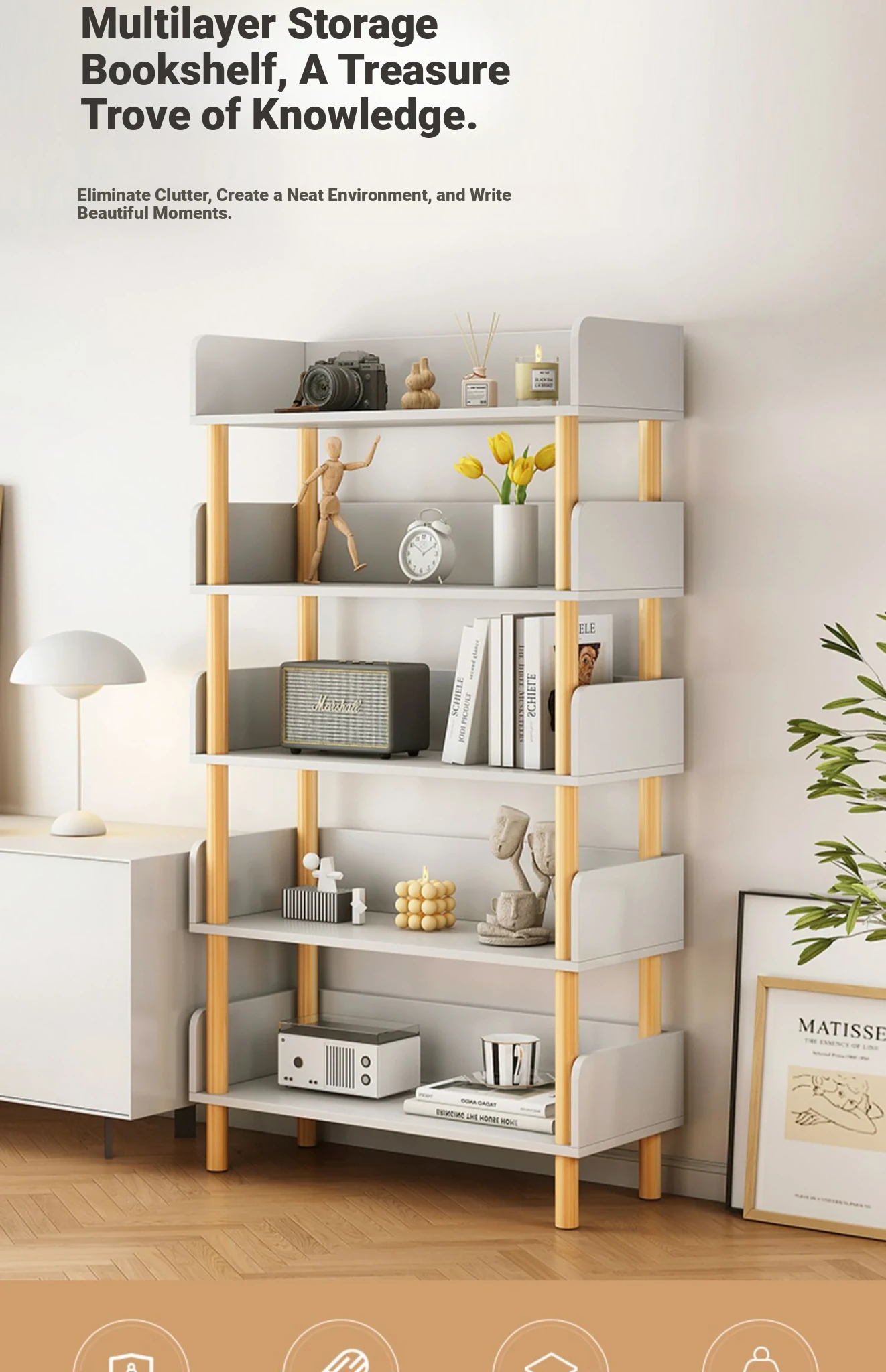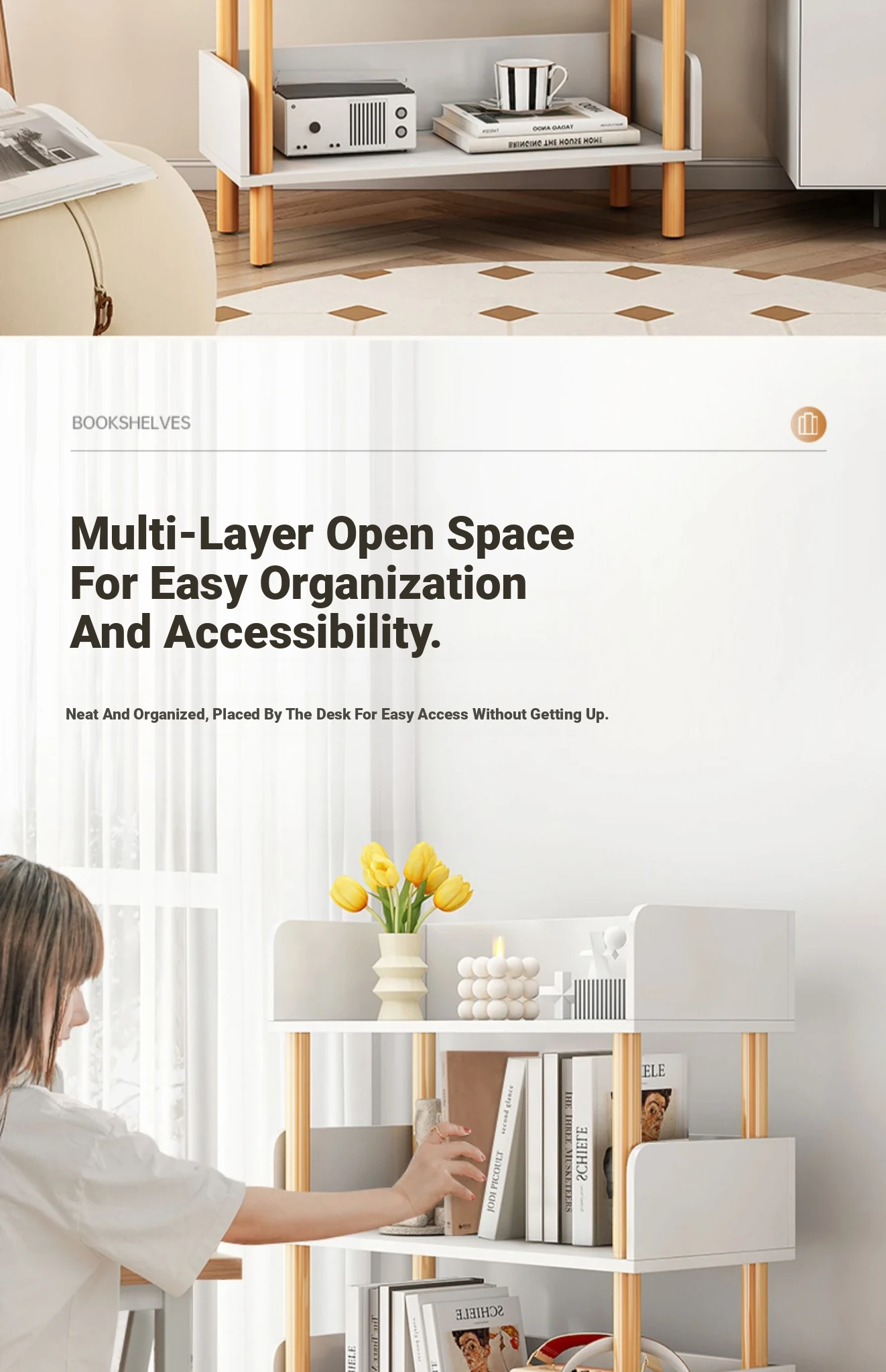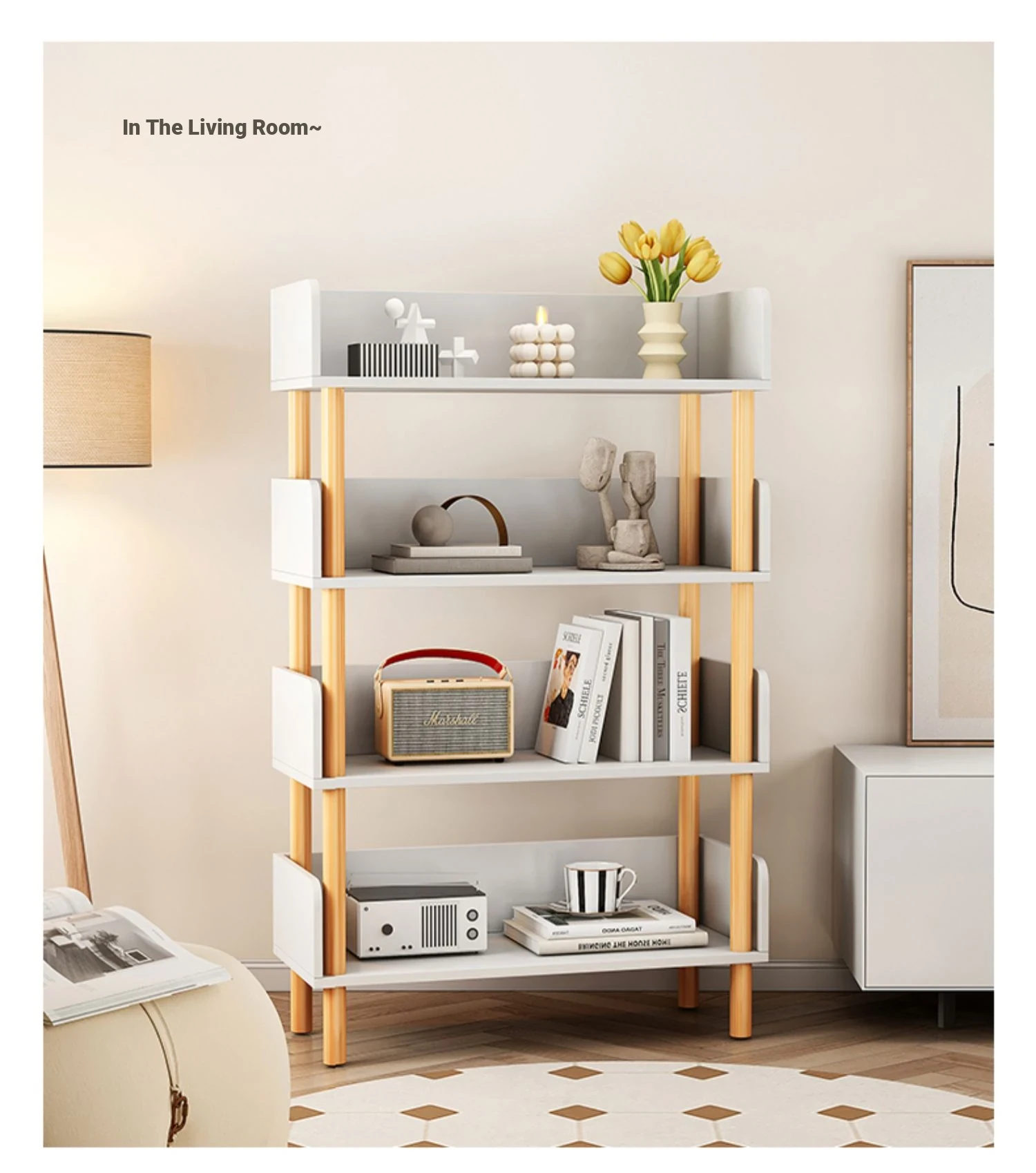 Stylish Floor-to-Ceiling Bookshelf and Storage Rack - Wall-Mounted Organizer for Living Room, Ideal for Student Dorms, Simple Bookcase for Efficient Space Saving and Clutter-Free Living