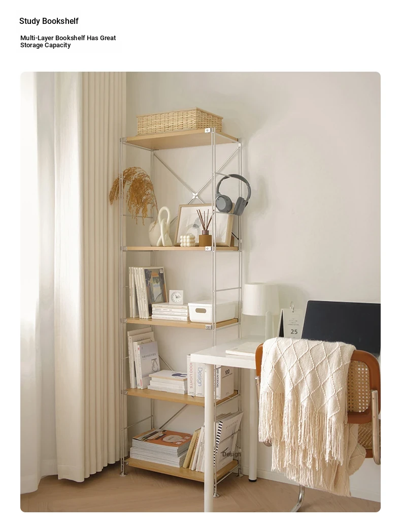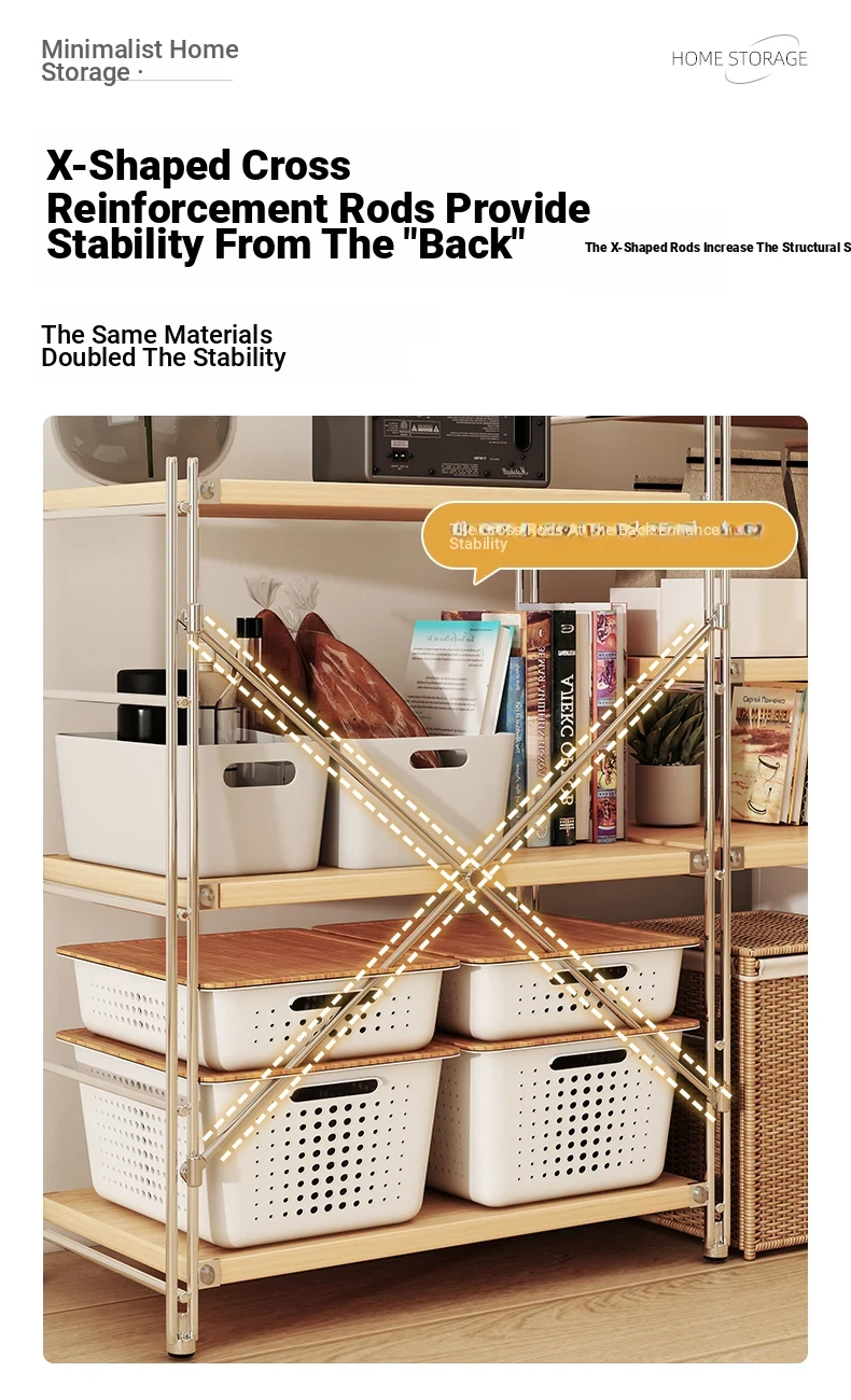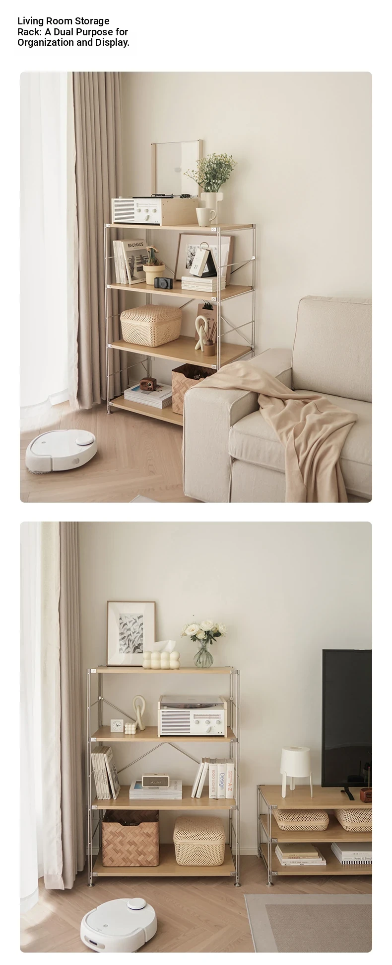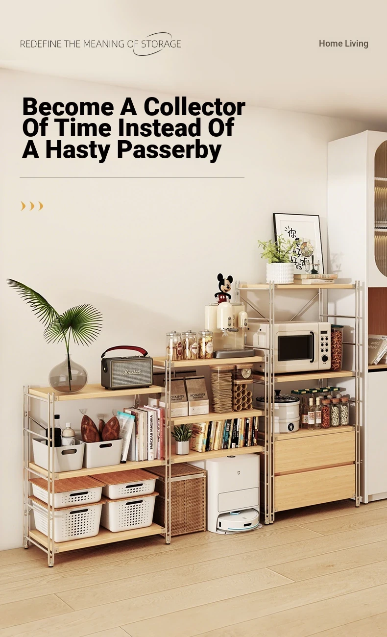 Stylish Steel-Wood Bookshelf: Japanese-Inspired Floor Storage Rack for Living Room, Multi-Layer Organizer for Kitchen and Dining Room, Simple and Functional Shelving Unit