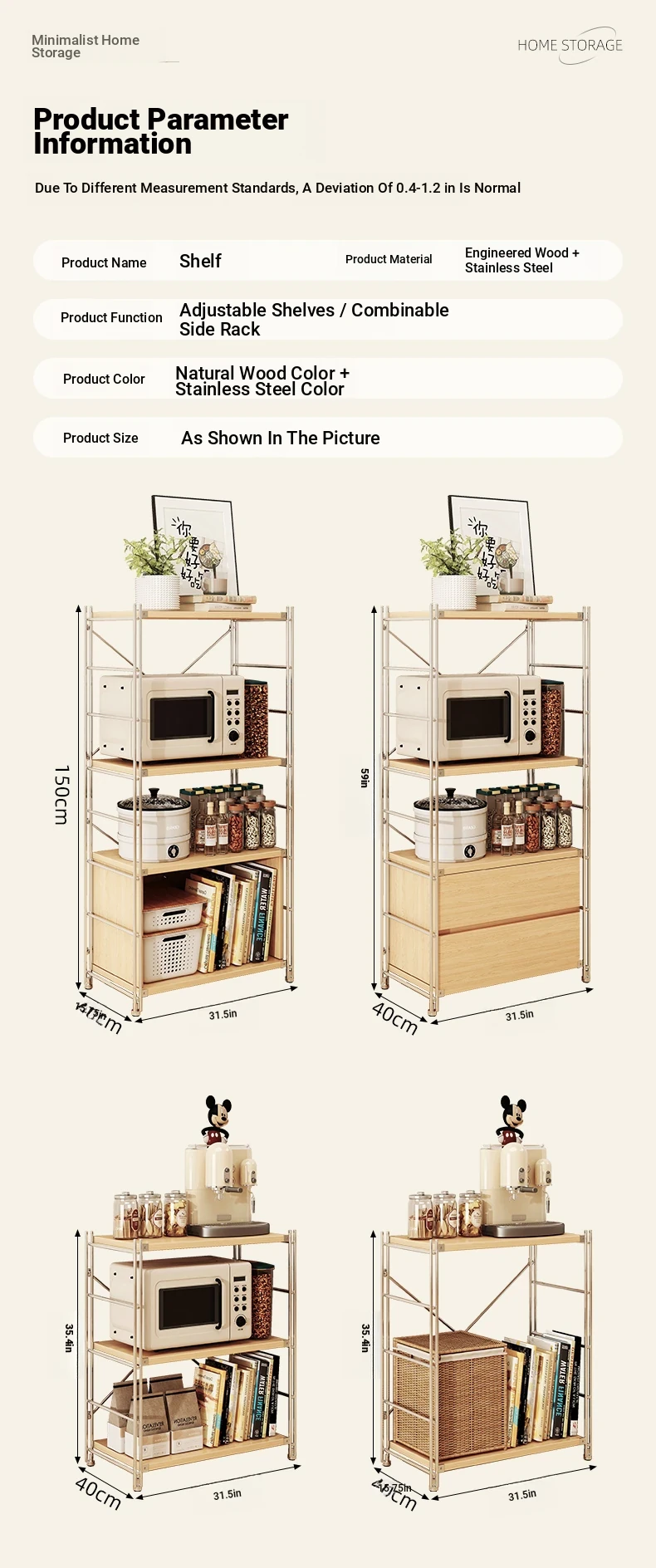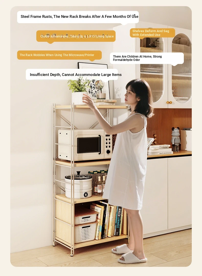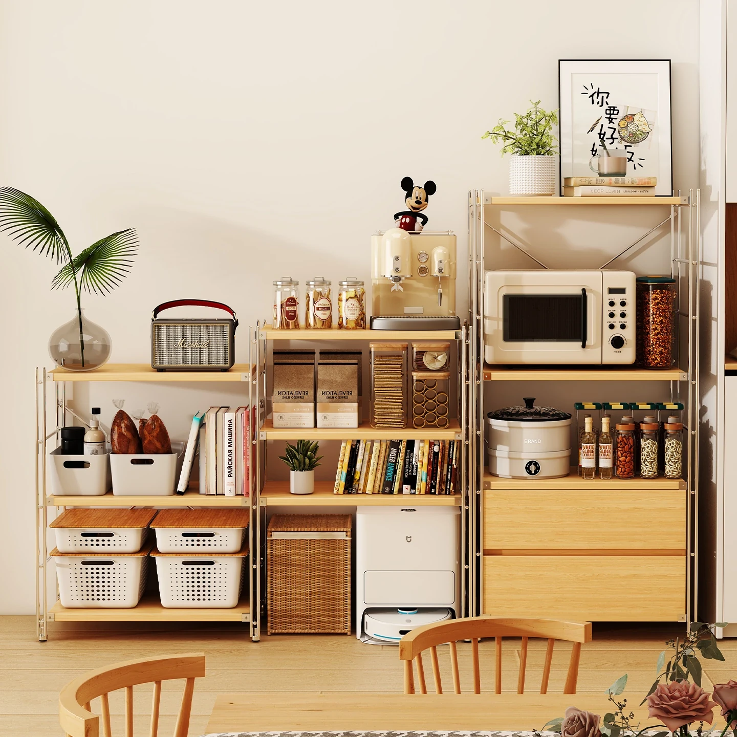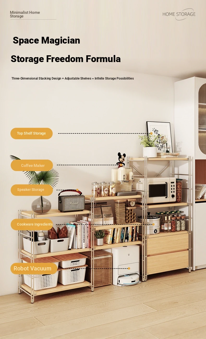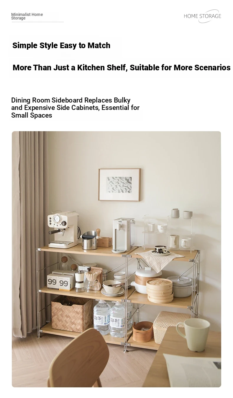 Stylish Steel-Wood Bookshelf: Japanese-Inspired Floor Storage Rack for Living Room, Multi-Layer Organizer for Kitchen and Dining Room, Simple and Functional Shelving Unit