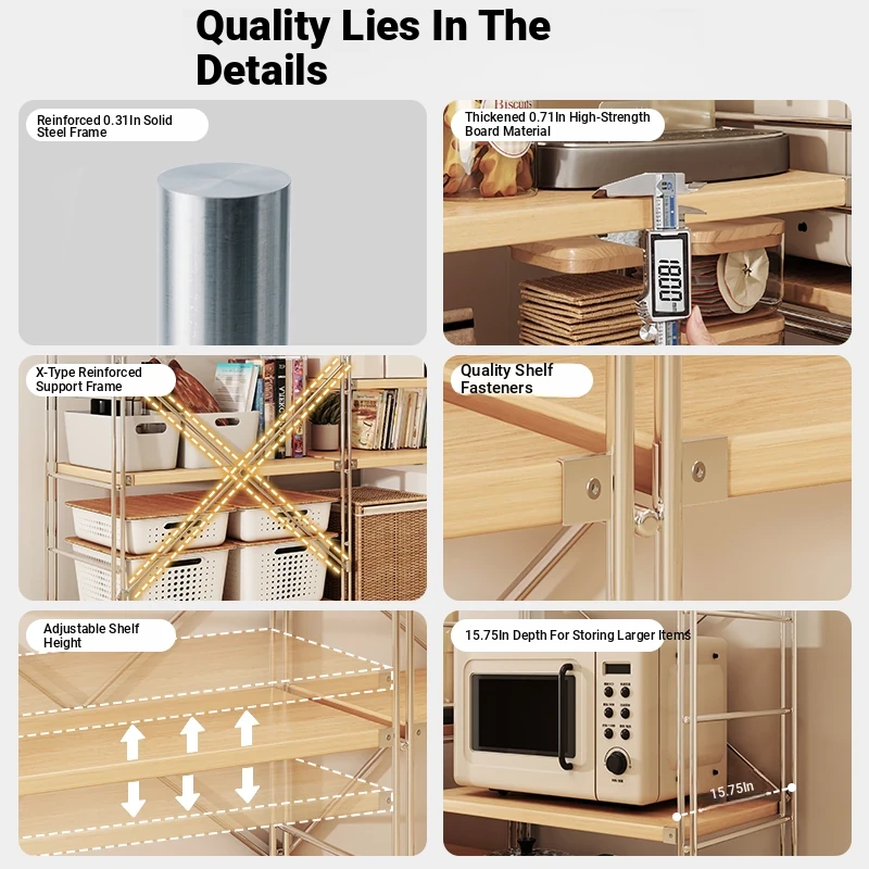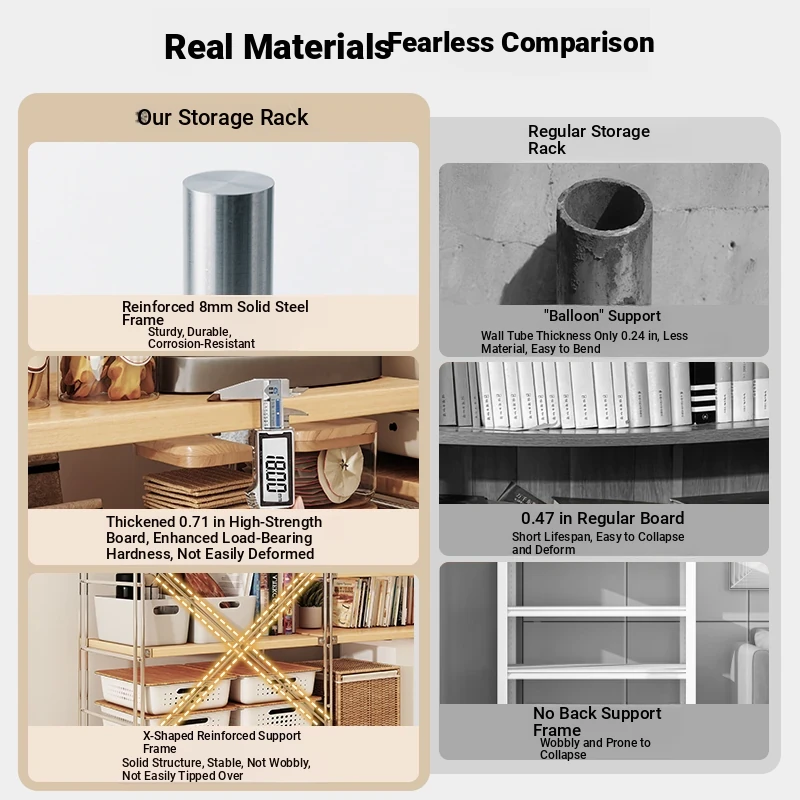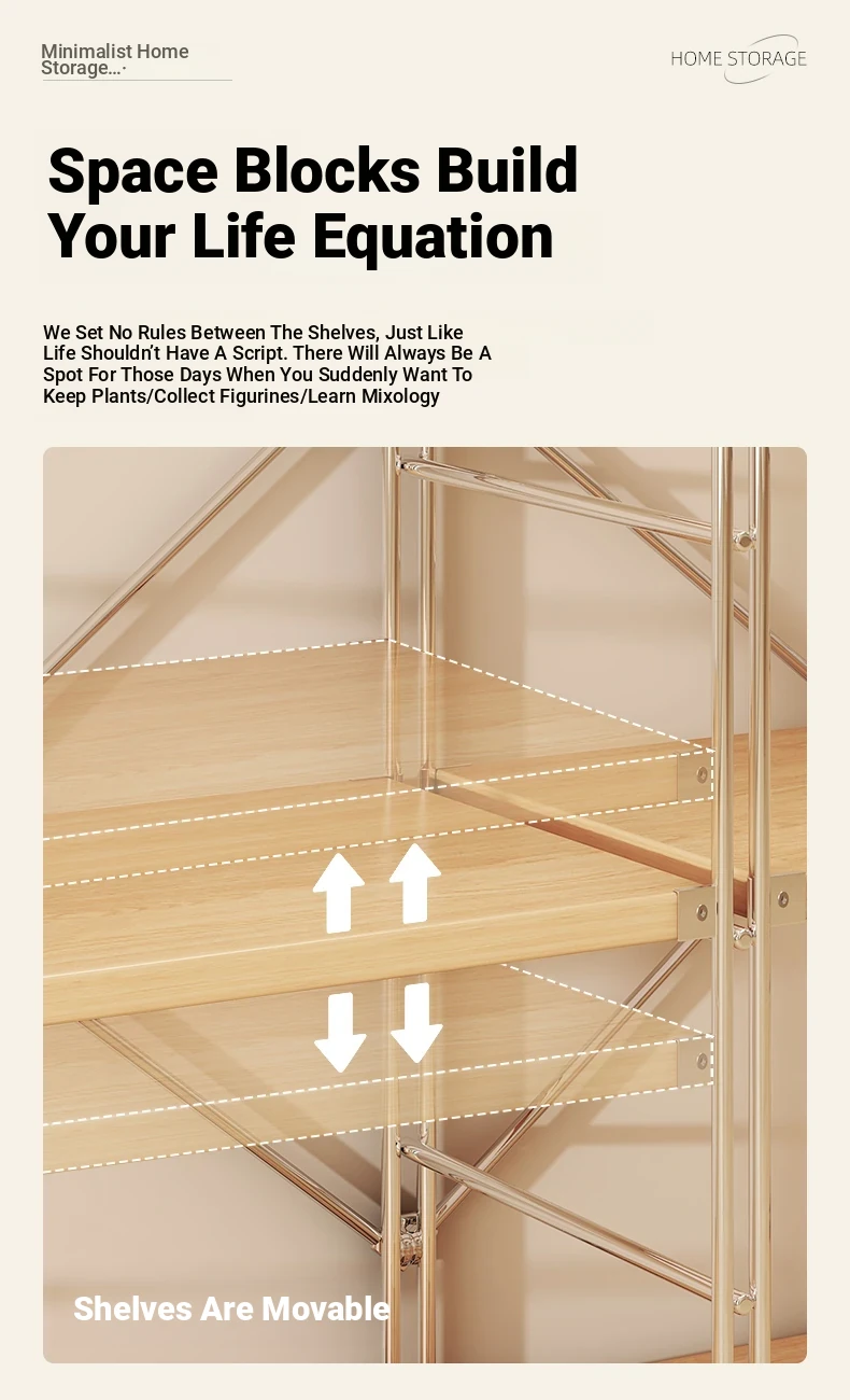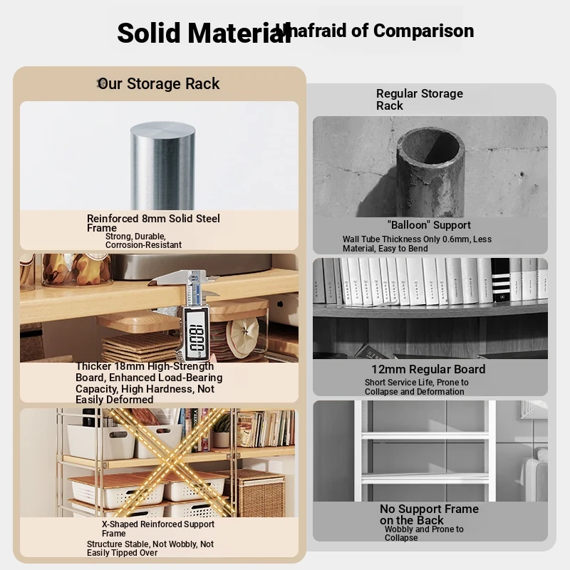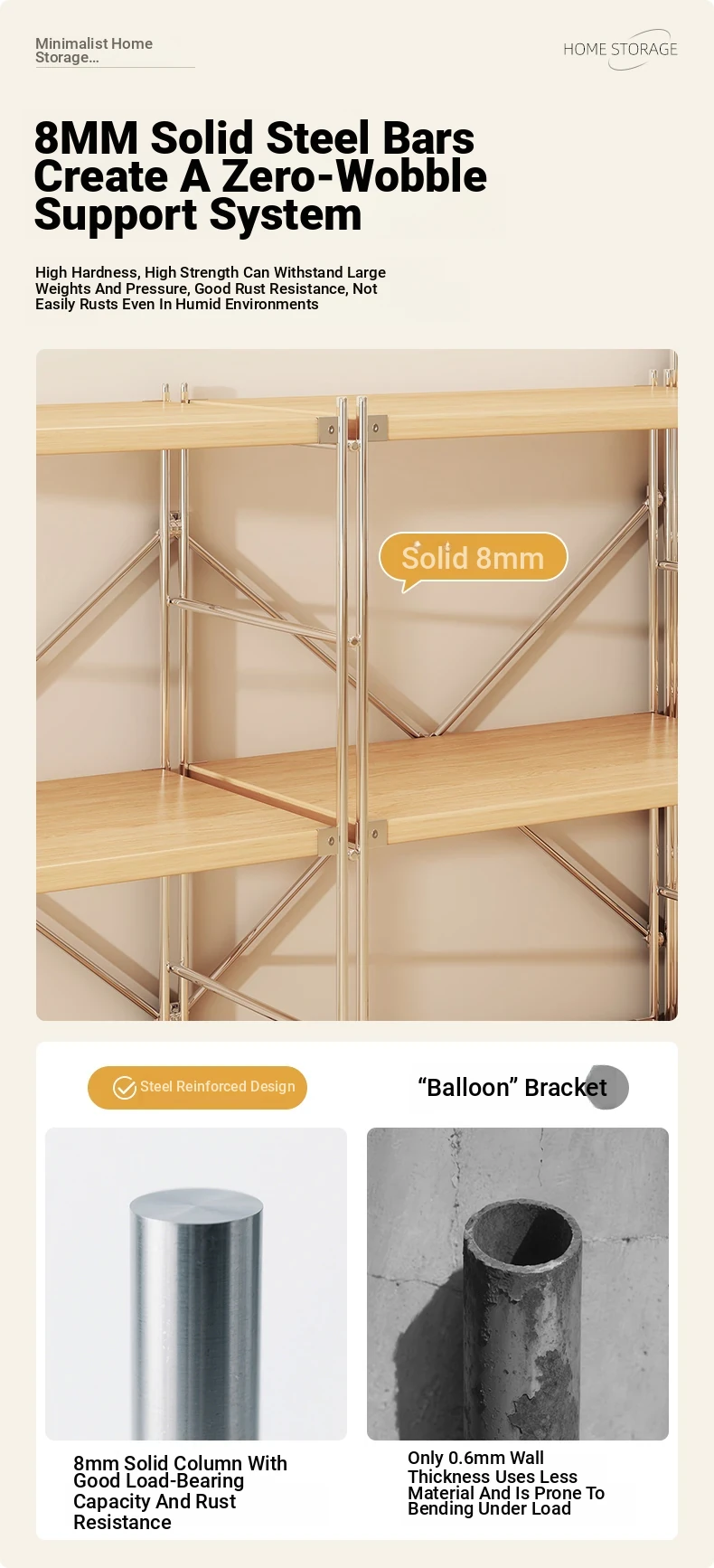 Stylish Steel-Wood Bookshelf: Japanese-Inspired Floor Storage Rack for Living Room, Multi-Layer Organizer for Kitchen and Dining Room, Simple and Functional Shelving Unit