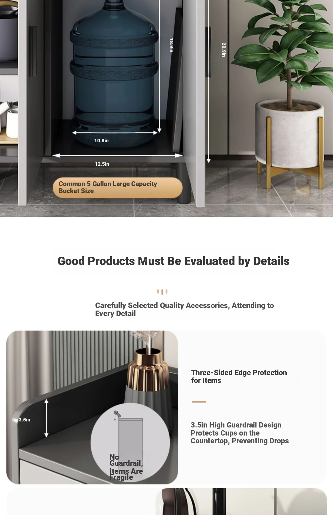 Accessible Luxury Gray [marble cabinet door] 26.77in*13.39in*36.61in metal handle + black metal leg