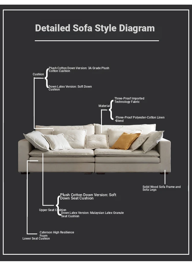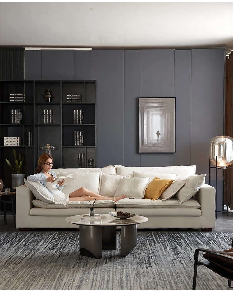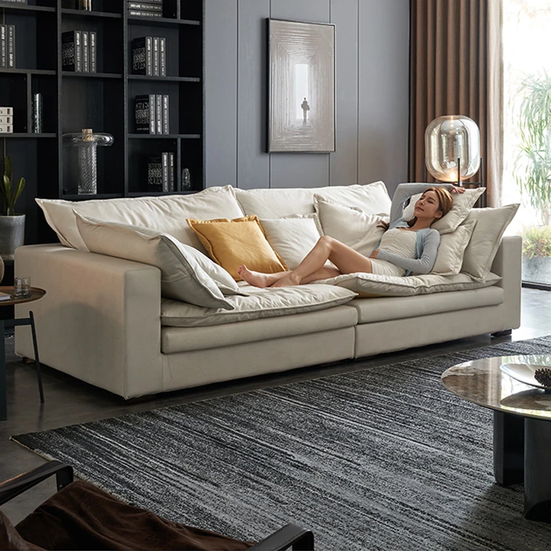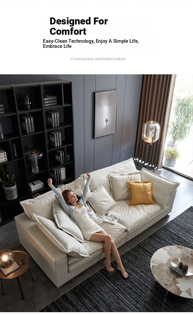 Ultra-Deep Wide Nordic Fabric Sofa for Small Apartments - Comfortable 3-4 Seat Modular Design with Easy-Clean Technology Fabric