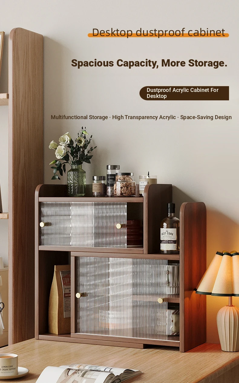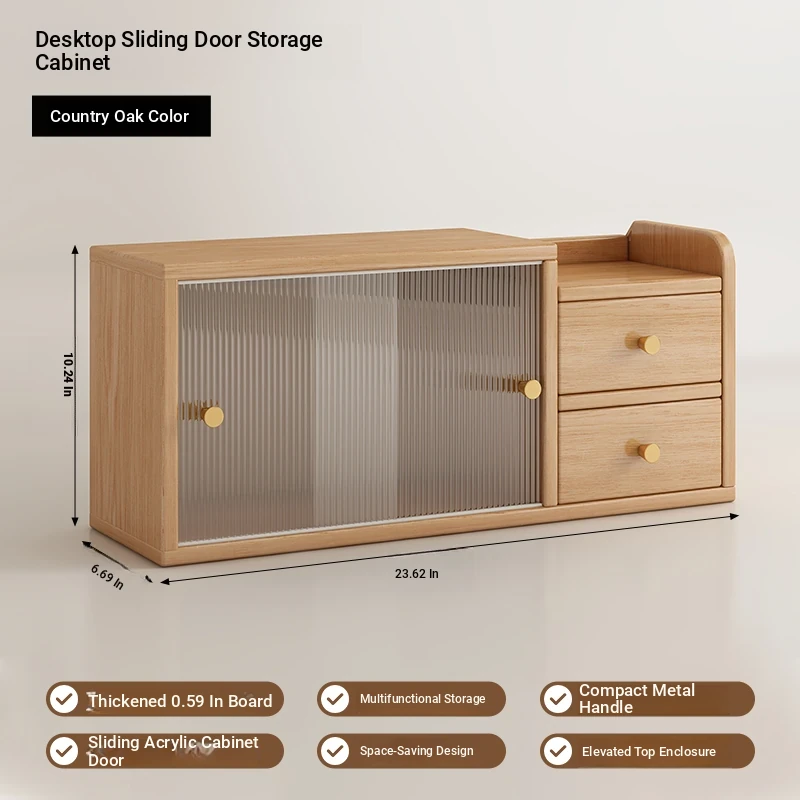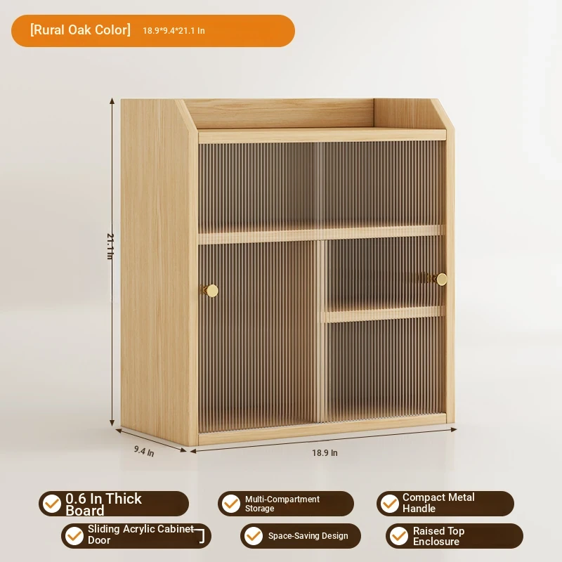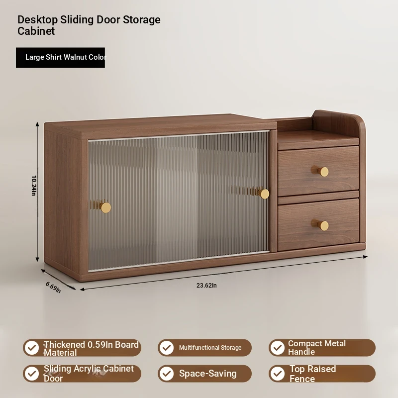 [High permeability sliding door 2 cabinet door⭐Double layer] log color 23.62in*6.69in*10.24in-thickened 0.59in
