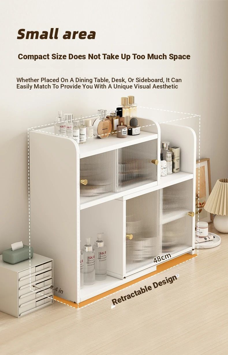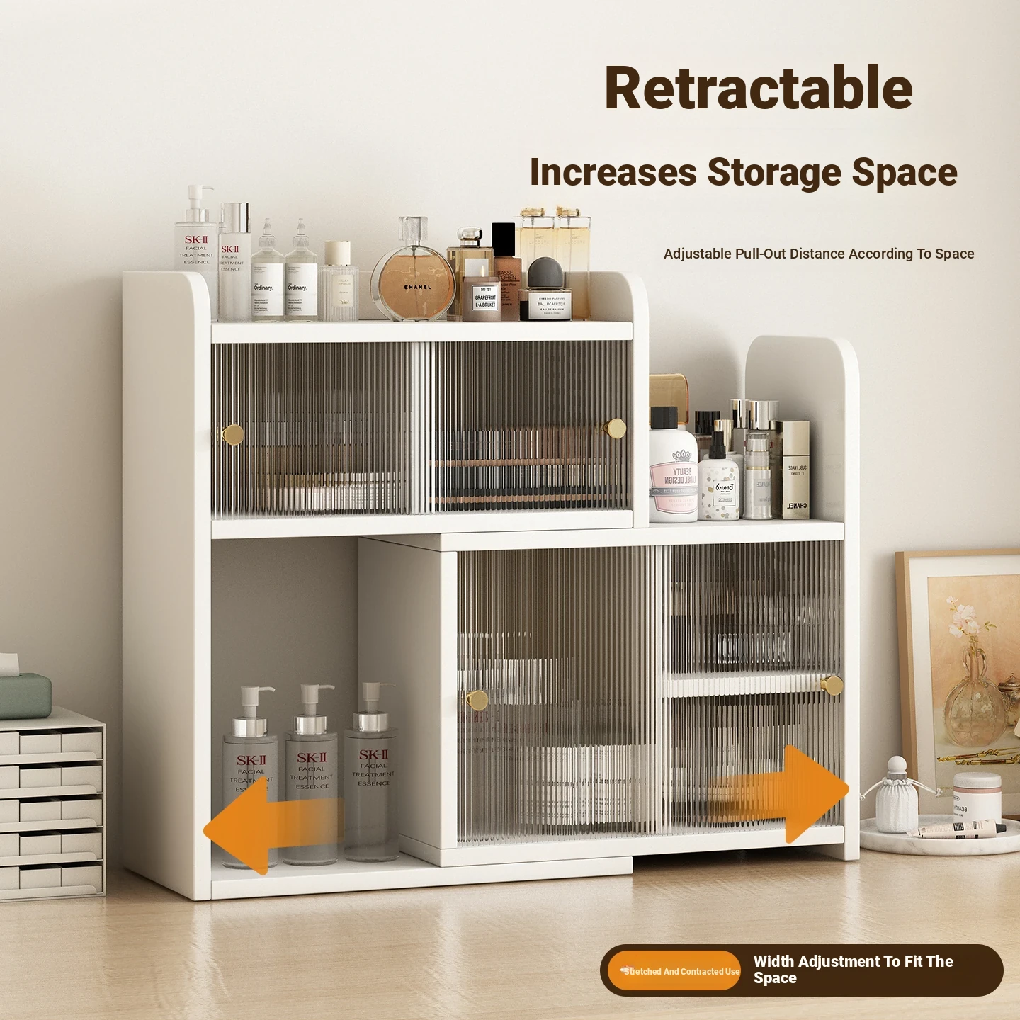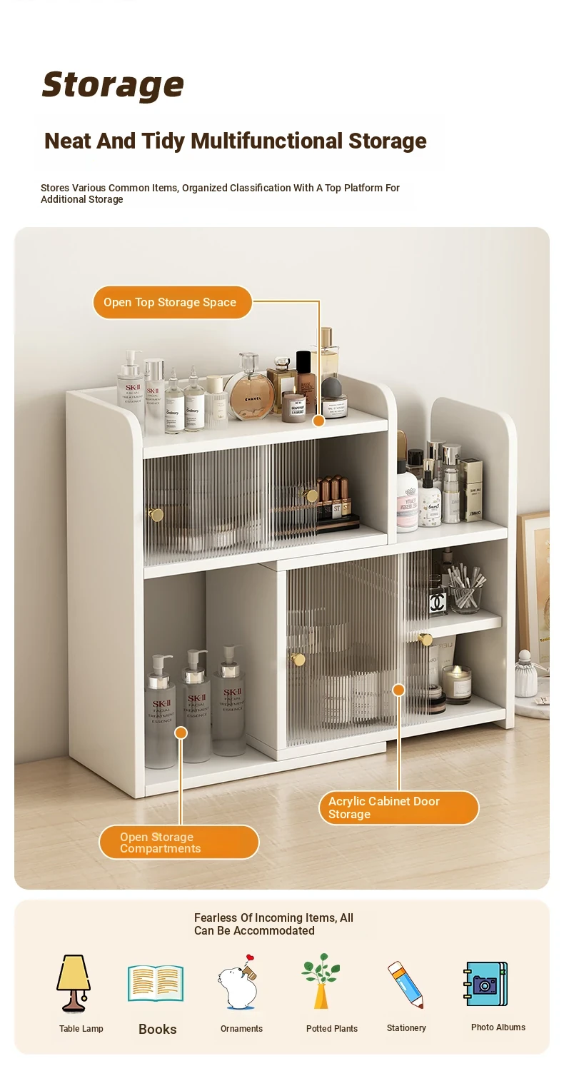 Versatile Desktop Organizer: Expandable Makeup Storage Cabinet & Bookshelf, Perfect for Vanity Table, Ideal for Office Desk or Side Cabinet, Cup Holder Included