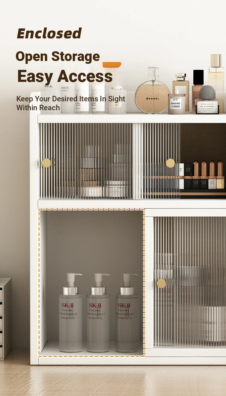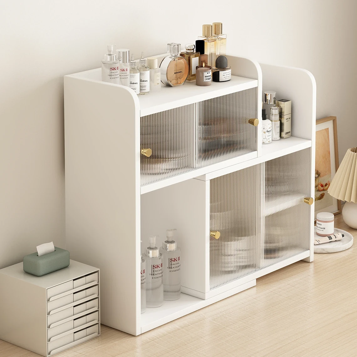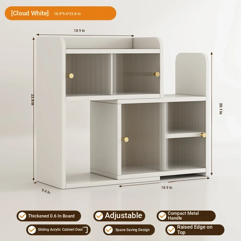Versatile Desktop Organizer: Expandable Makeup Storage Cabinet & Bookshelf, Perfect for Vanity Table, Ideal for Office Desk or Side Cabinet, Cup Holder Included