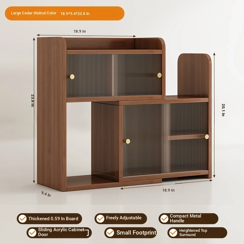 [Hot three-layer ☆ Double sliding door] Big Cedar walnut color 18.90in*9.45in*21.26in-thickened 0.59in