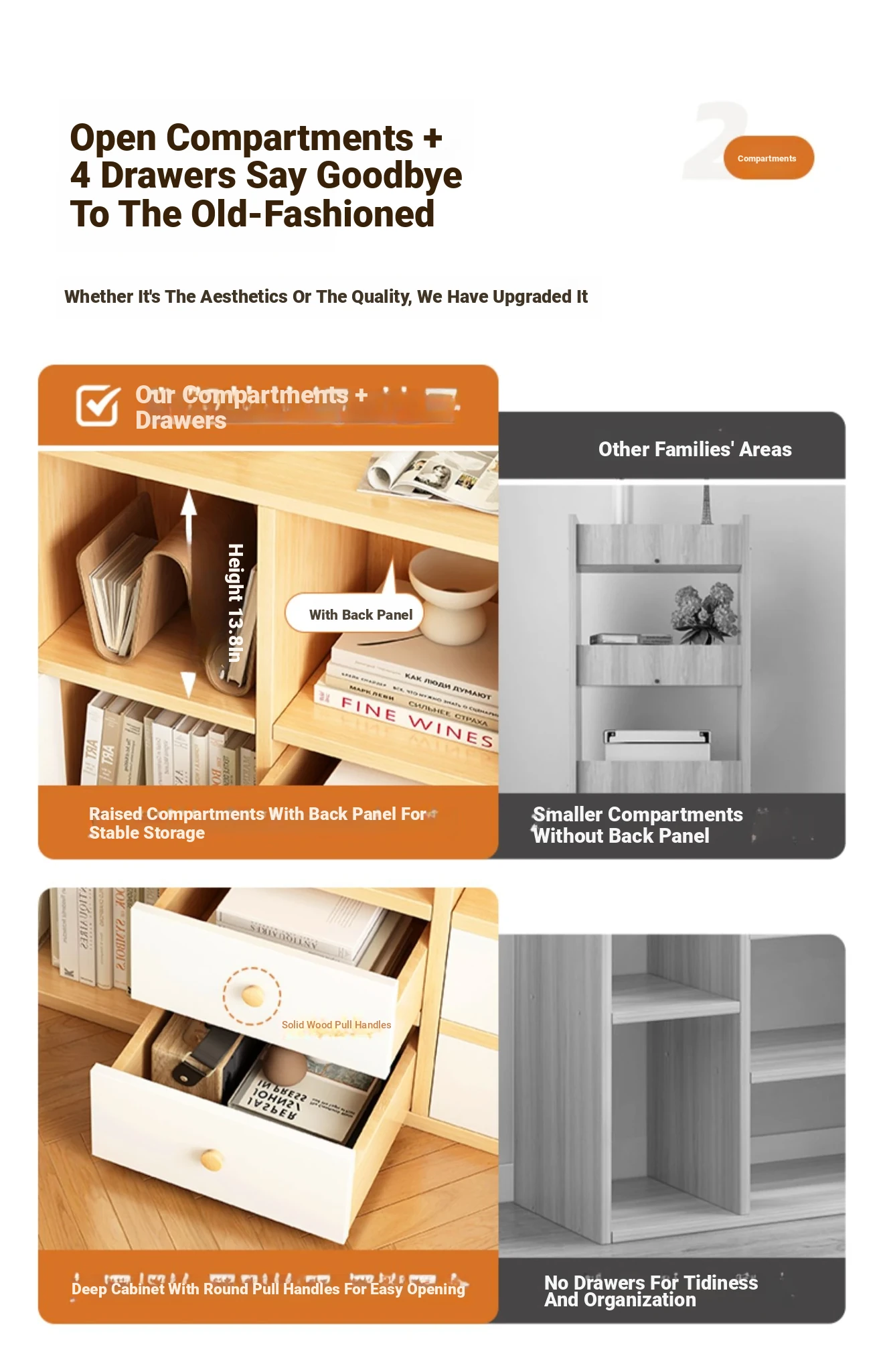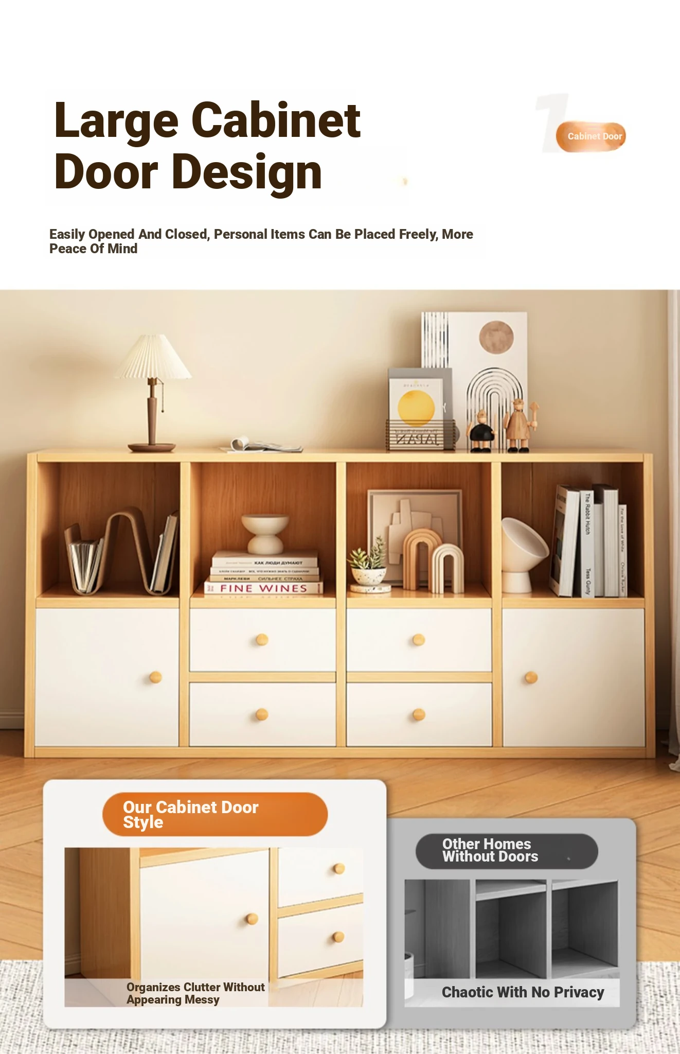 [Combination ☆ Four Draws] Log White 84.25in*10.63in*48.43in(2 Rooms +1 Cabinet)