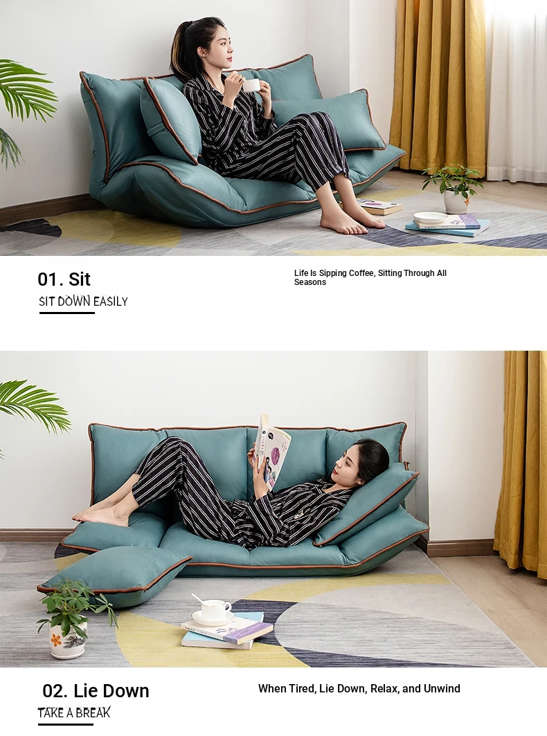 Versatile Lazy Sofa Bed for Two - Perfect for Living Room, Balcony, and Bedroom! Foldable Tatami Cushions for Relaxation and Sleep. Ideal Space-Saving Solution!