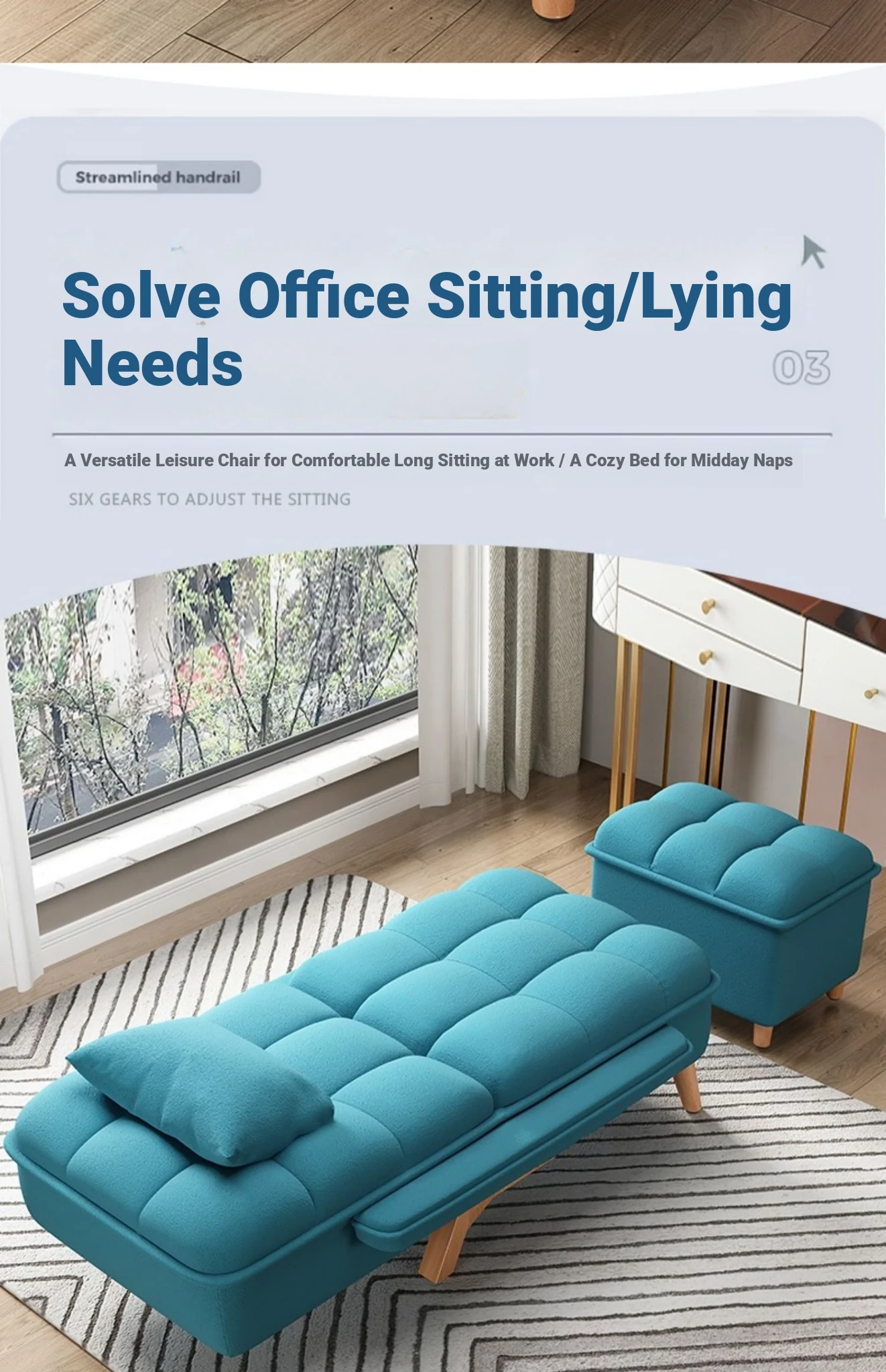 Upgraded latex lake blue sofa + pedal (Waterproof 3D fabric)
