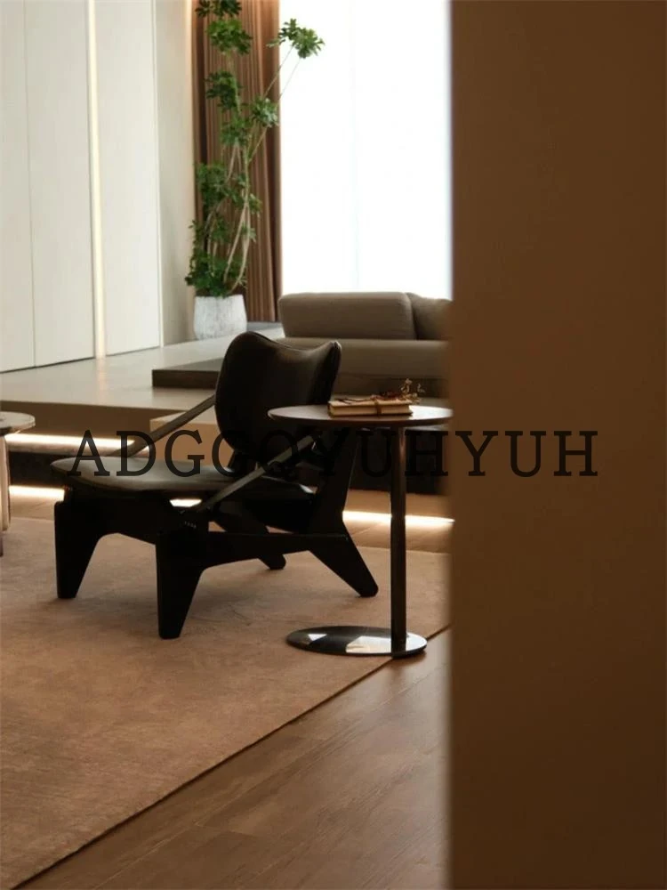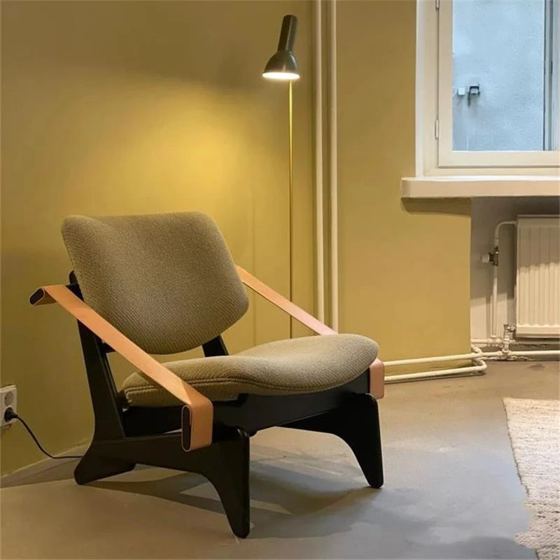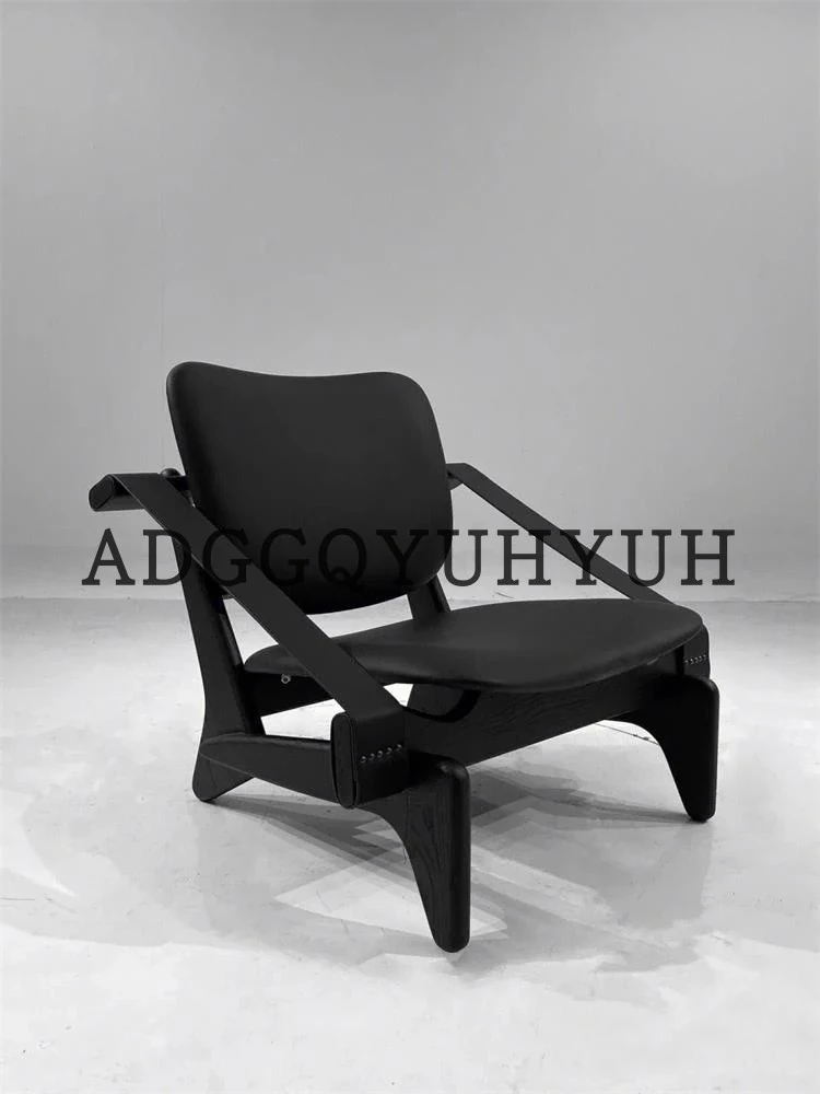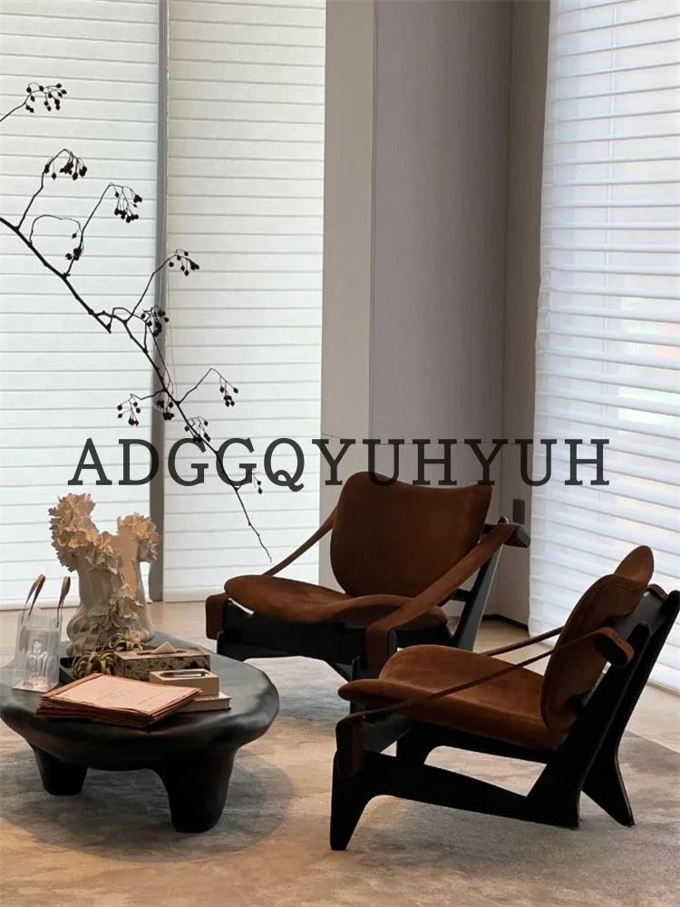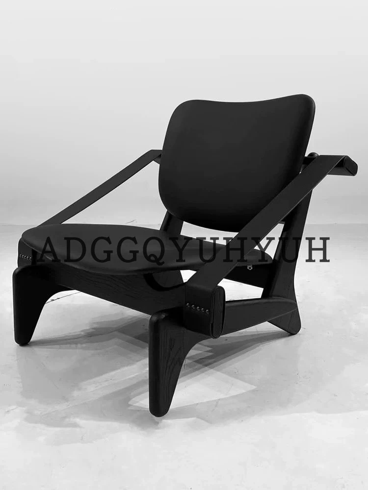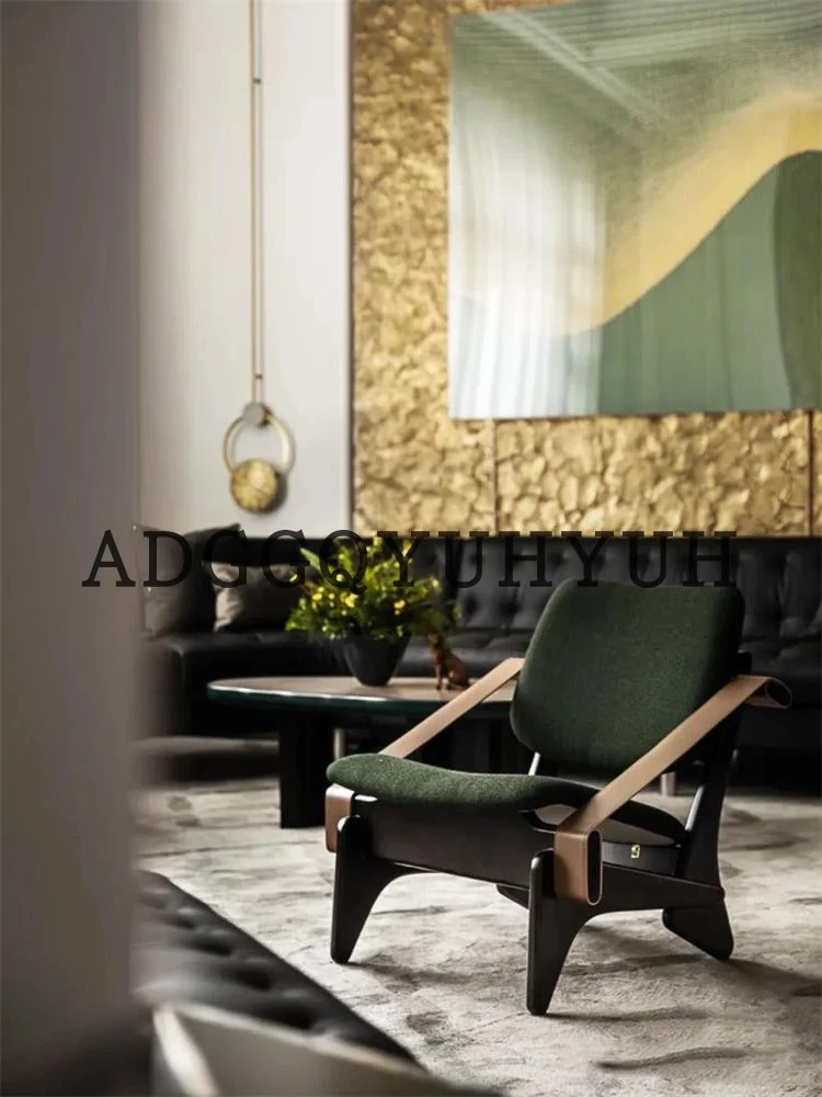 Vintage-Inspired Designer Armchair: French Retro Modern Solid Wood Single Seat, Creative Trendy Lounge Chair for Meetings and Conversations