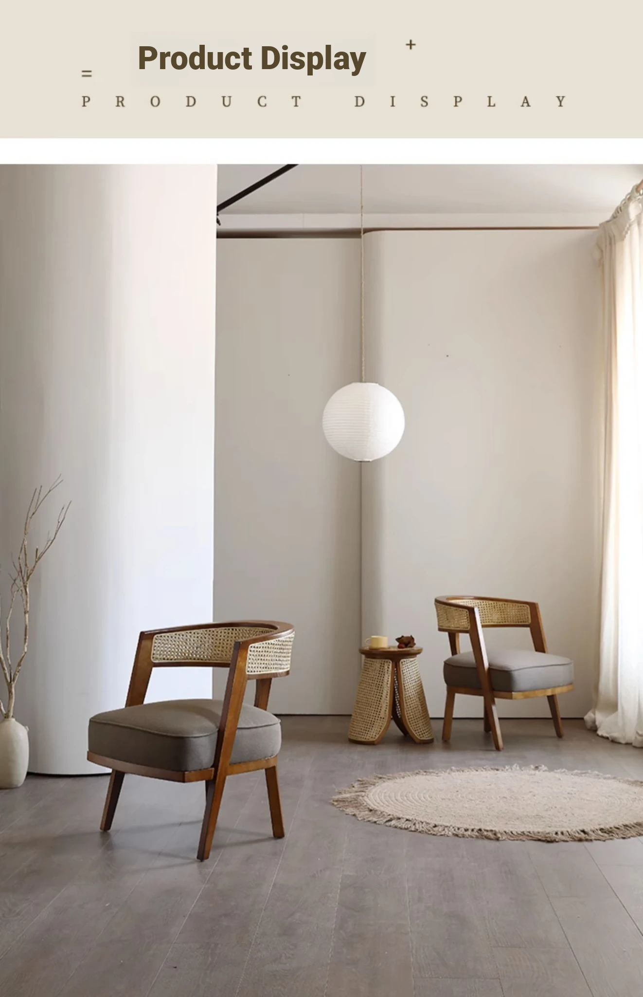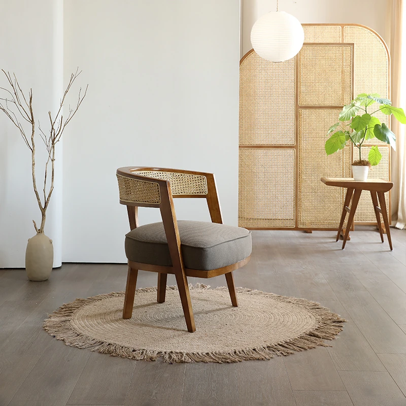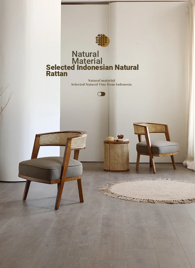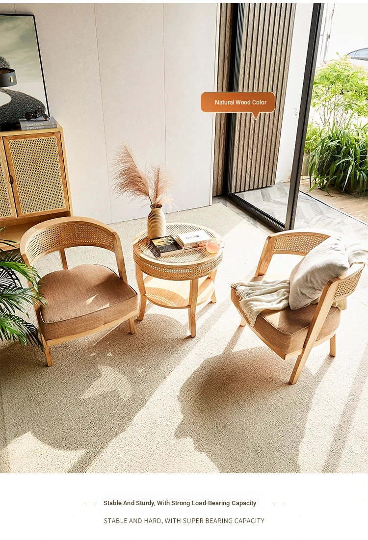 Wabi-Sabi Style Rattan Chair and Coffee Table Set – 3-Piece for Cozy Balconies and Guesthouses, Featuring Solid Wood and Rattan Design for Ultimate Comfort and Relaxation at Home.