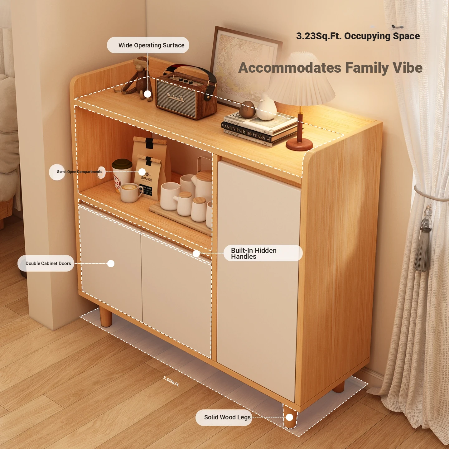 Wall-Mounted Tea Cabinet with Large Storage Capacity - Multifunctional Sideboard for Dining Room and Living Room, Compact Half-Height Organizer for Efficient Space Saving