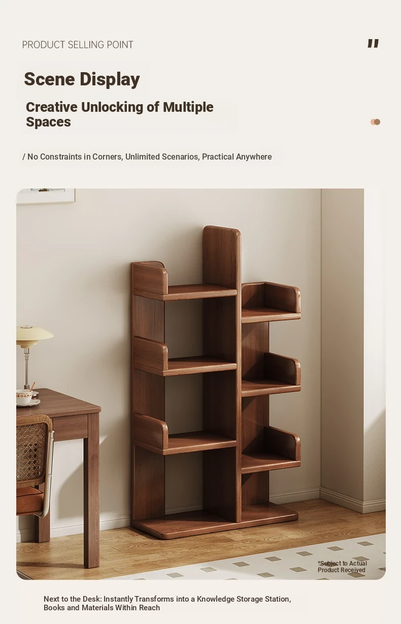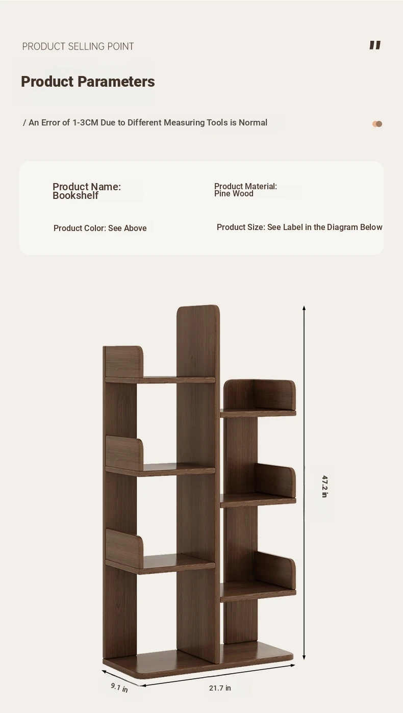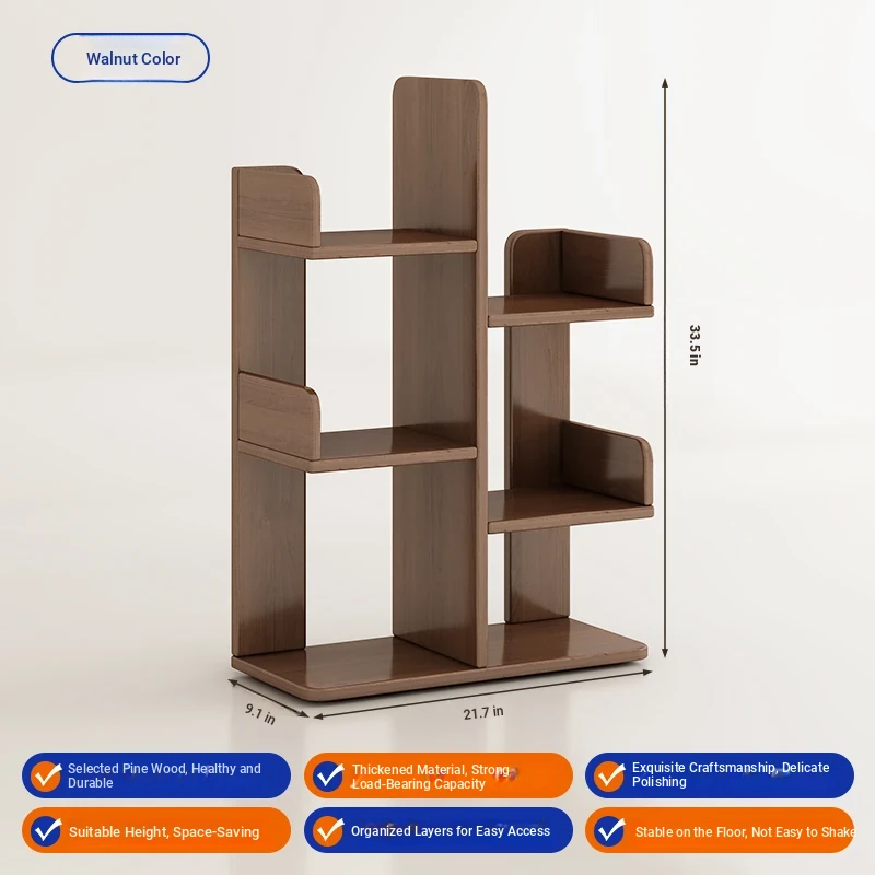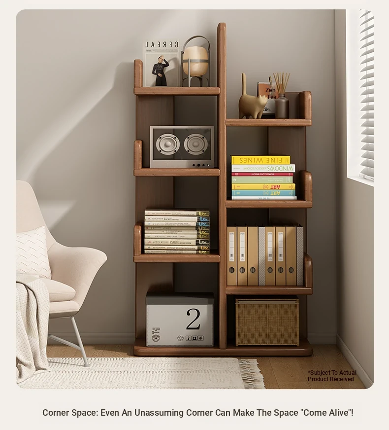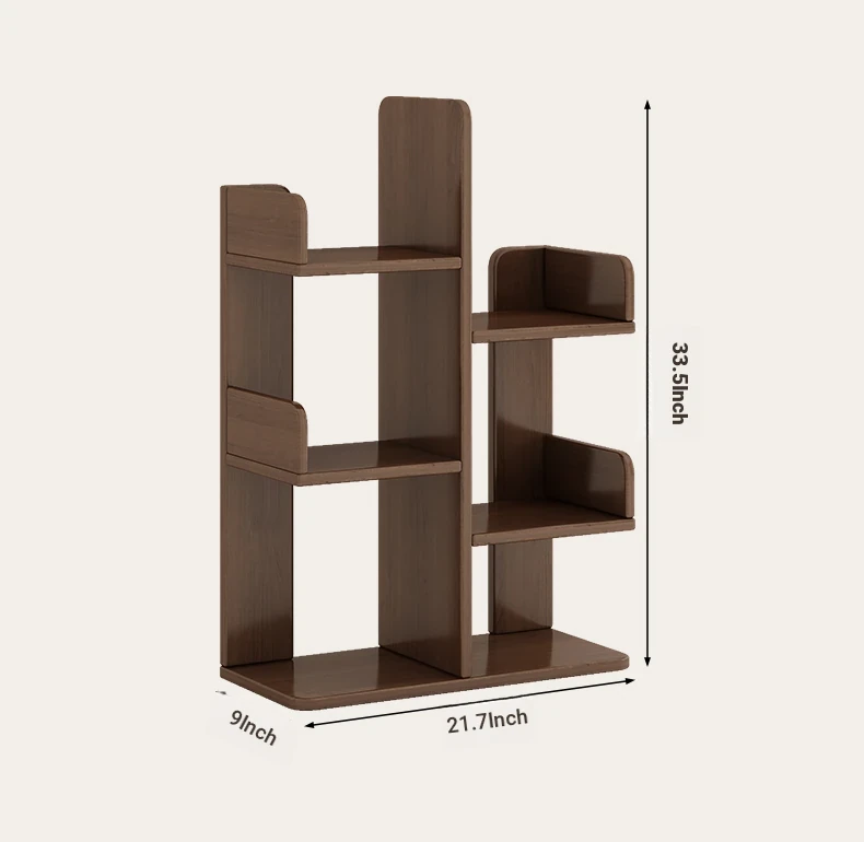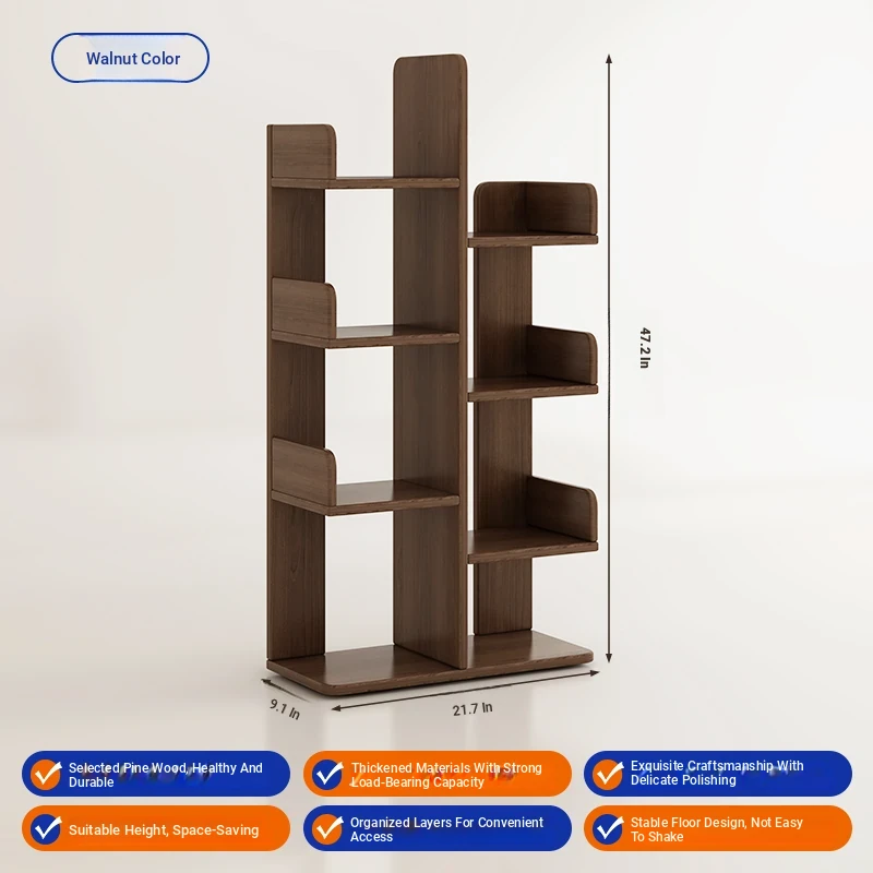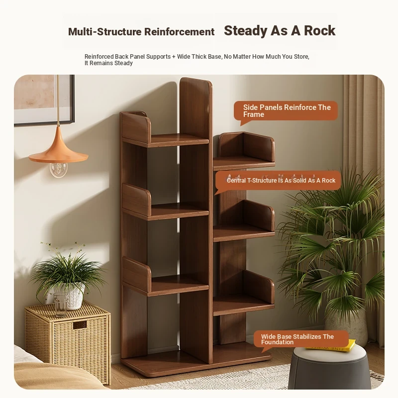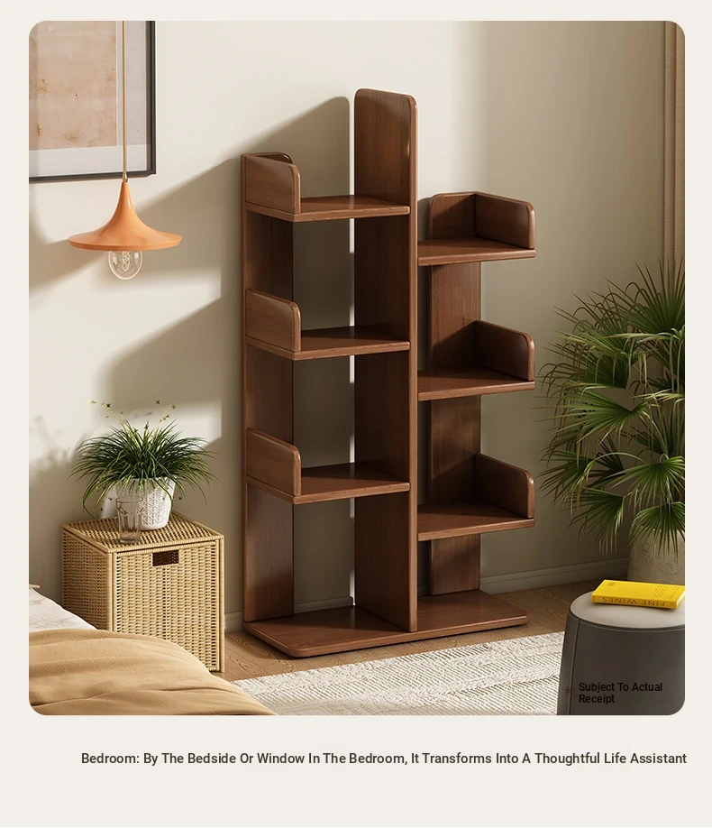 Walnut Corner Bookshelf - Space-Saving Tree-Shaped Storage Rack for Bedroom, Stylish and Creative Free-Standing Design for Organized Living