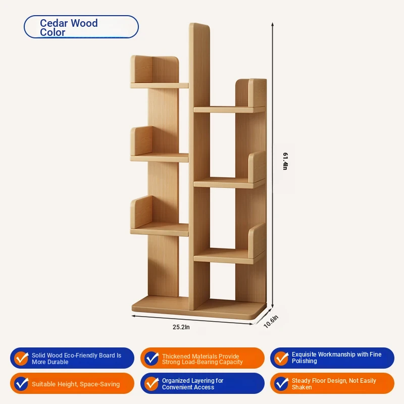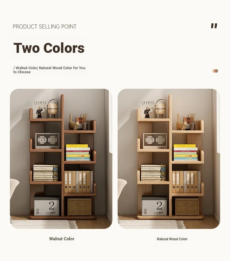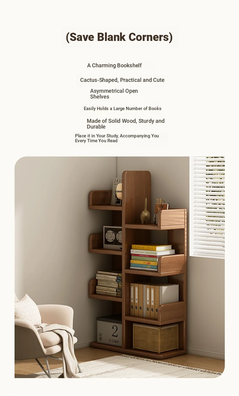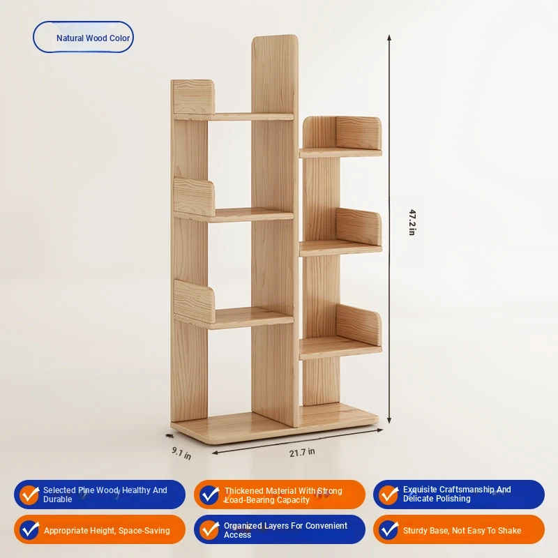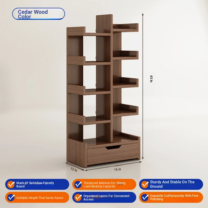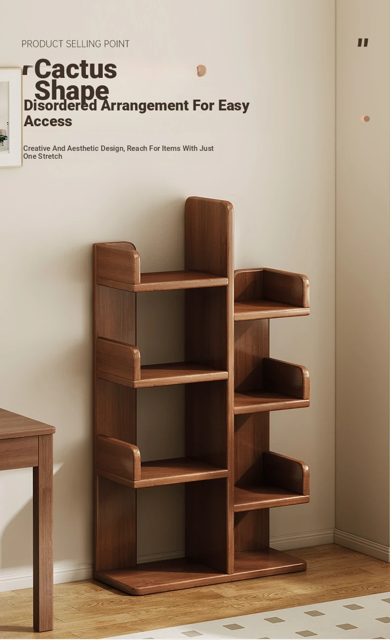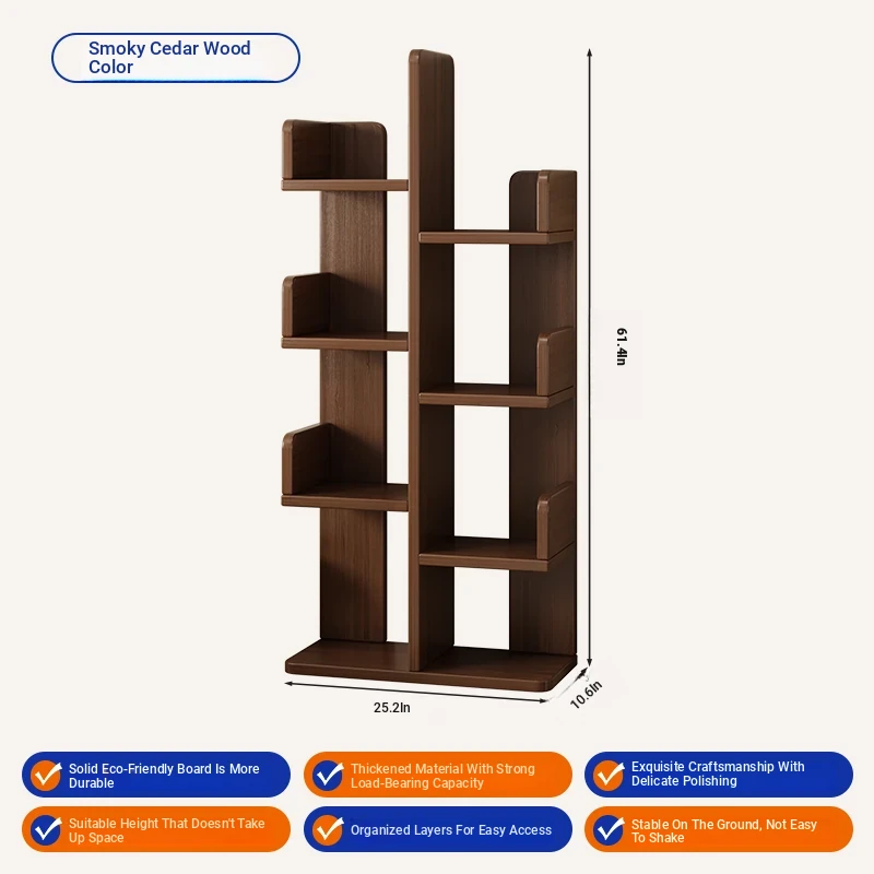Walnut Corner Bookshelf - Space-Saving Tree-Shaped Storage Rack for Bedroom, Stylish and Creative Free-Standing Design for Organized Living