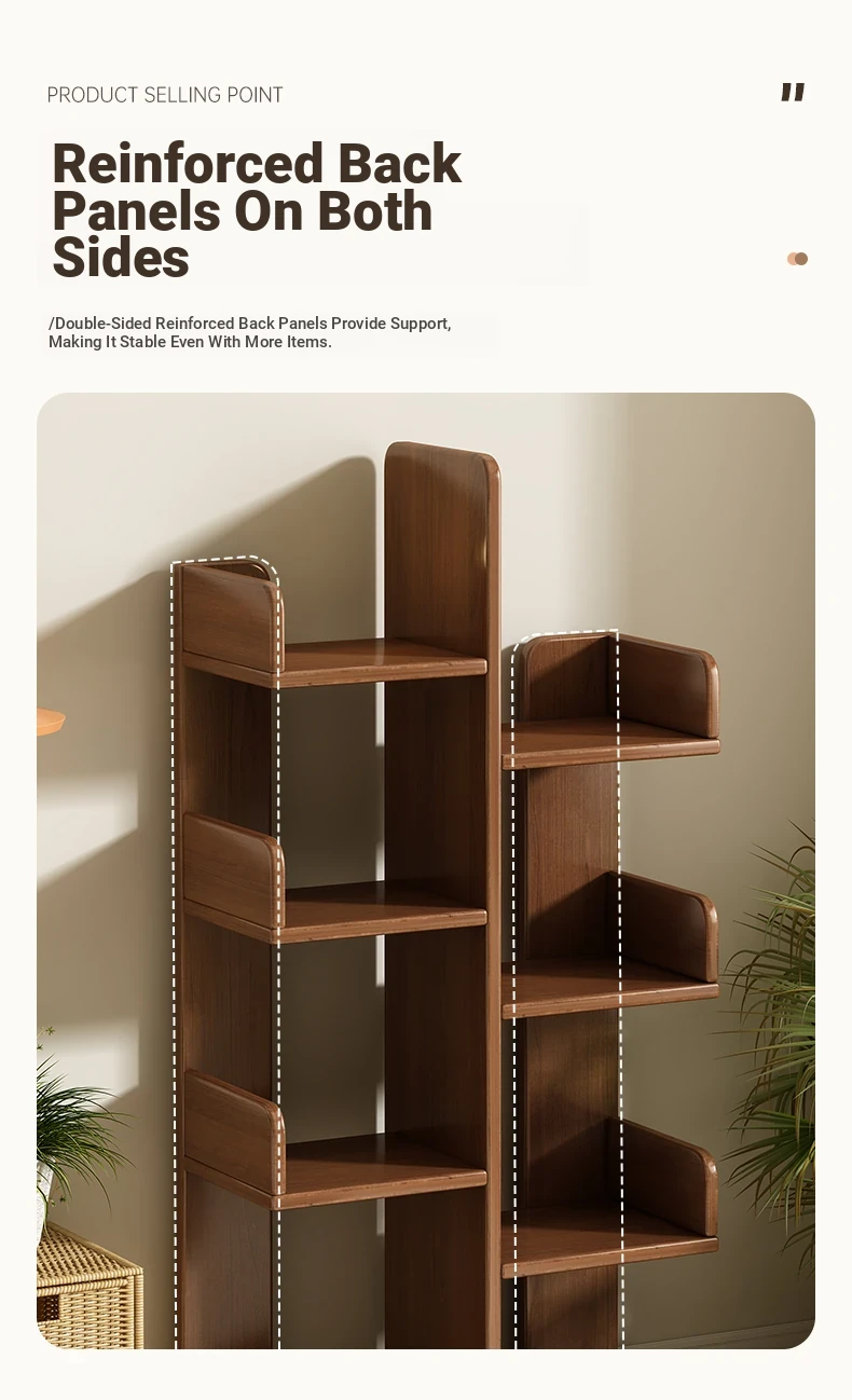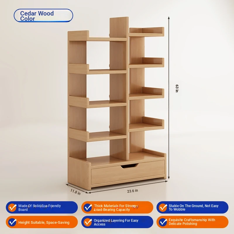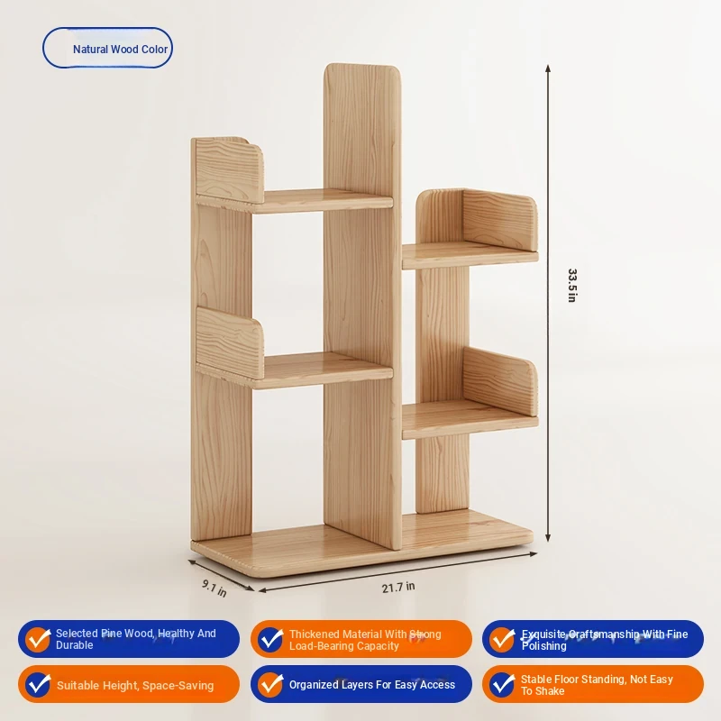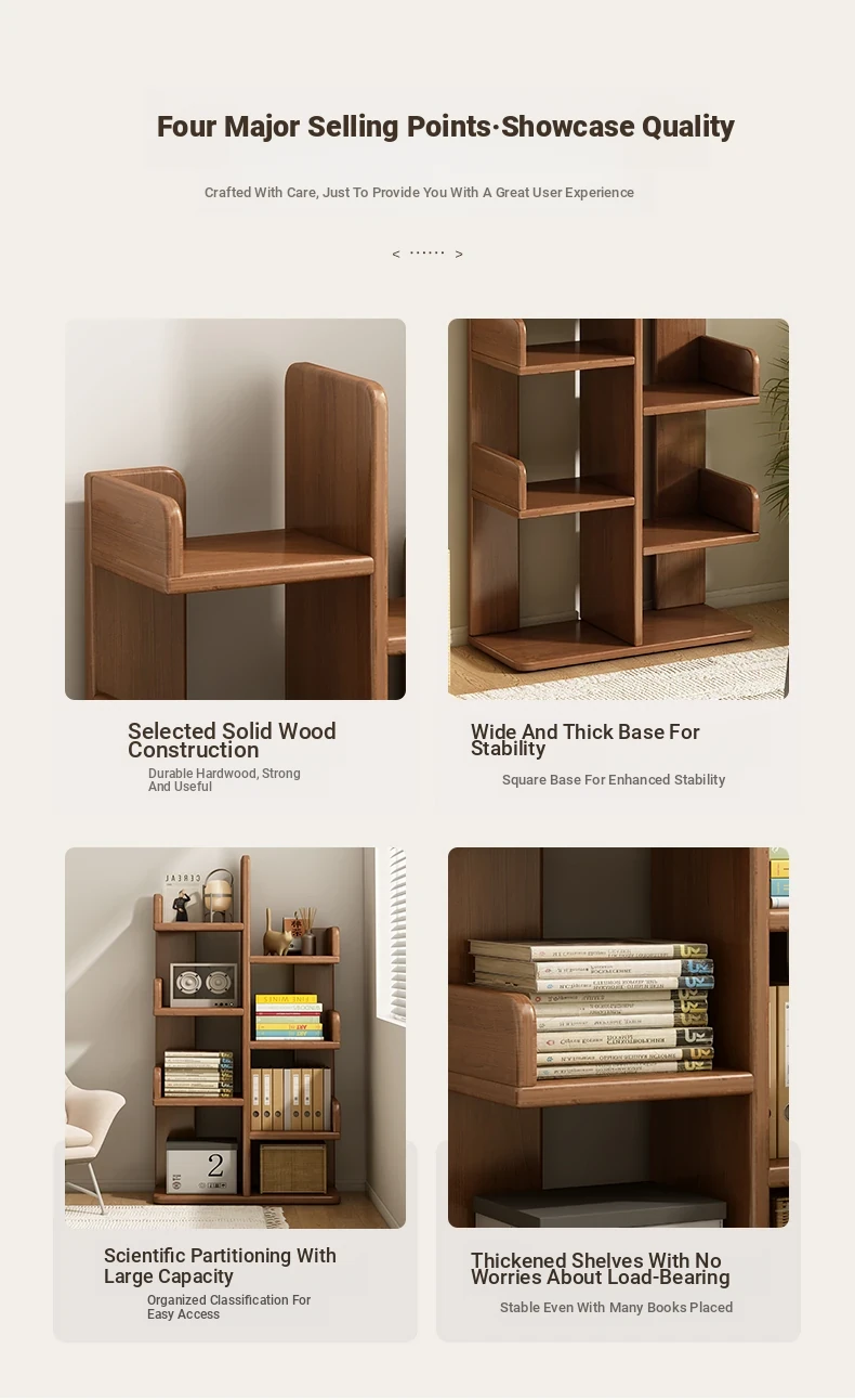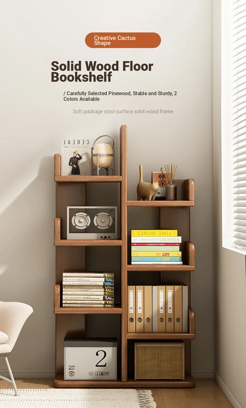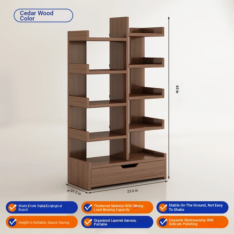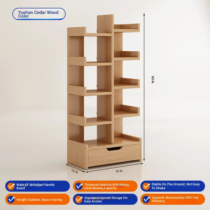 Walnut Corner Bookshelf - Space-Saving Tree-Shaped Storage Rack for Bedroom, Stylish and Creative Free-Standing Design for Organized Living