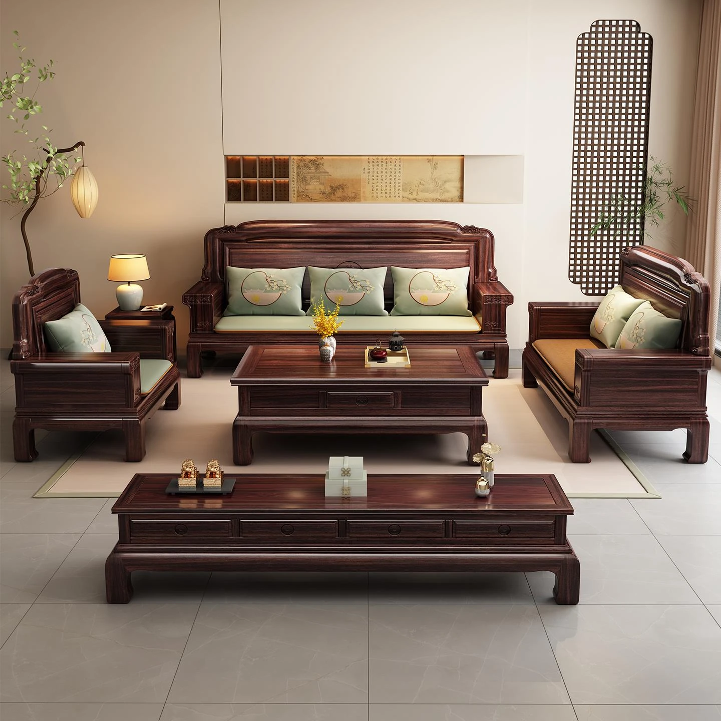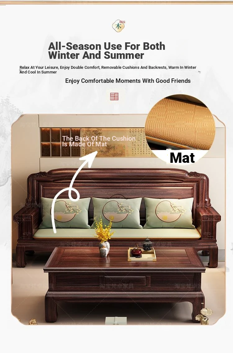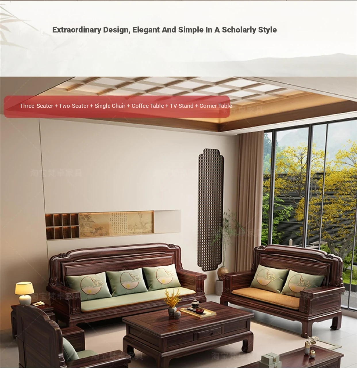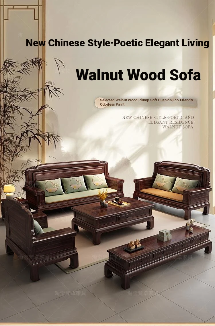 Walnut Solid Wood Sofa Set - Classic Chinese Style, Versatile for All Seasons, Perfect for Villas and Small Apartments, Elevate Your Living Room with Timeless Elegance