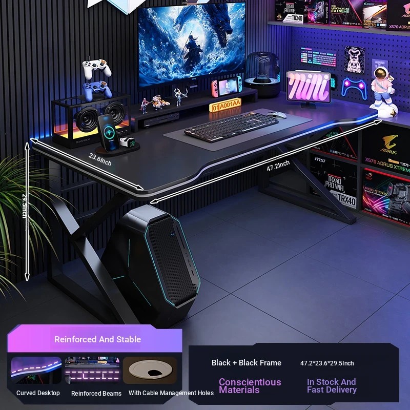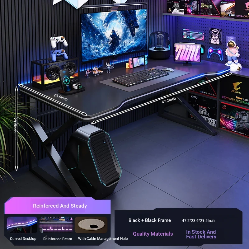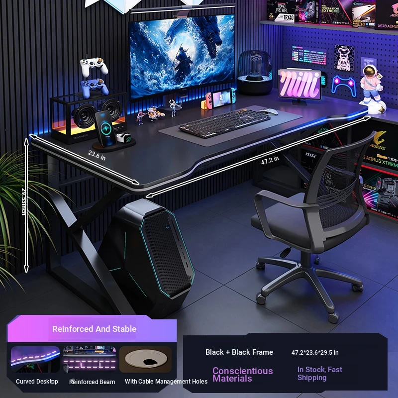 [Table and Chair] 47.24in*23.62in Frosted Black + computer chair