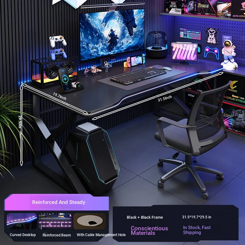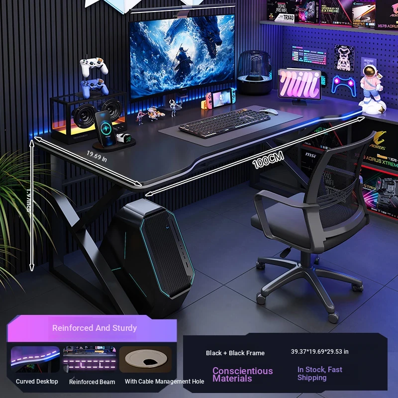 [Table and Chair] 39.37in*19.69in Frosted Black + computer chair