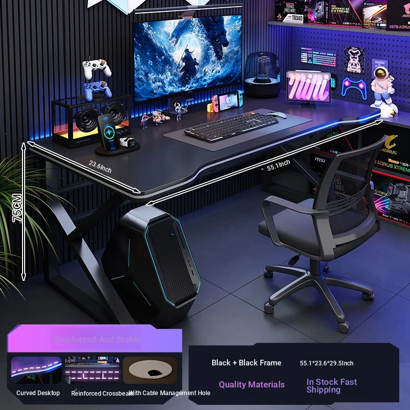 [Table and Chair] 55.12in*23.62in Frosted Black + computer chair