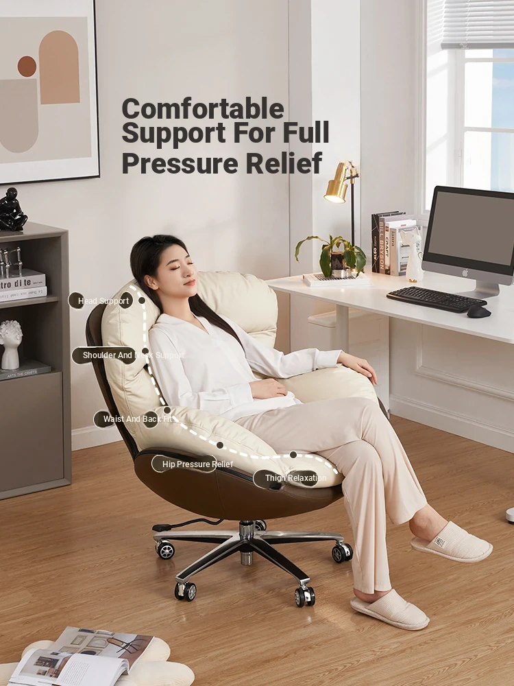 Minimalist Cream Vintage Office Lounge Chair - Single Recliner for Relaxation and Mid-Century Style Comfort in Your Workspace. Perfect for Naps!