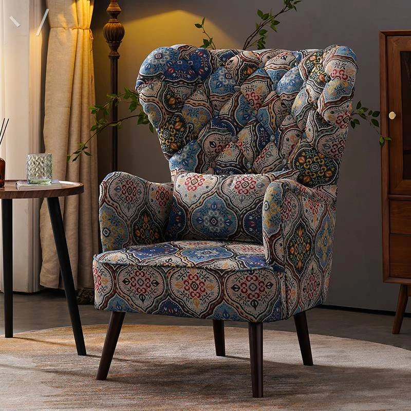American Style Vintage Cottage Single Sofa Chair - Retro Floral Fabric for Cozy Bedrooms and Balconies, Perfect for Relaxing in Style!