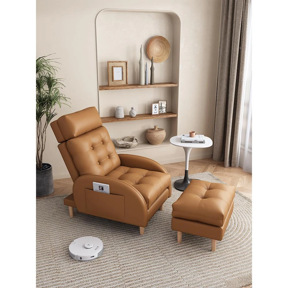 Chic Cat Scratch-Proof Lazy Sofa - Trendy Small Space Chaise Lounge for Living Room, Balcony, or Bedroom - Genuine Leather Folding Recliner for Ultimate Comfort