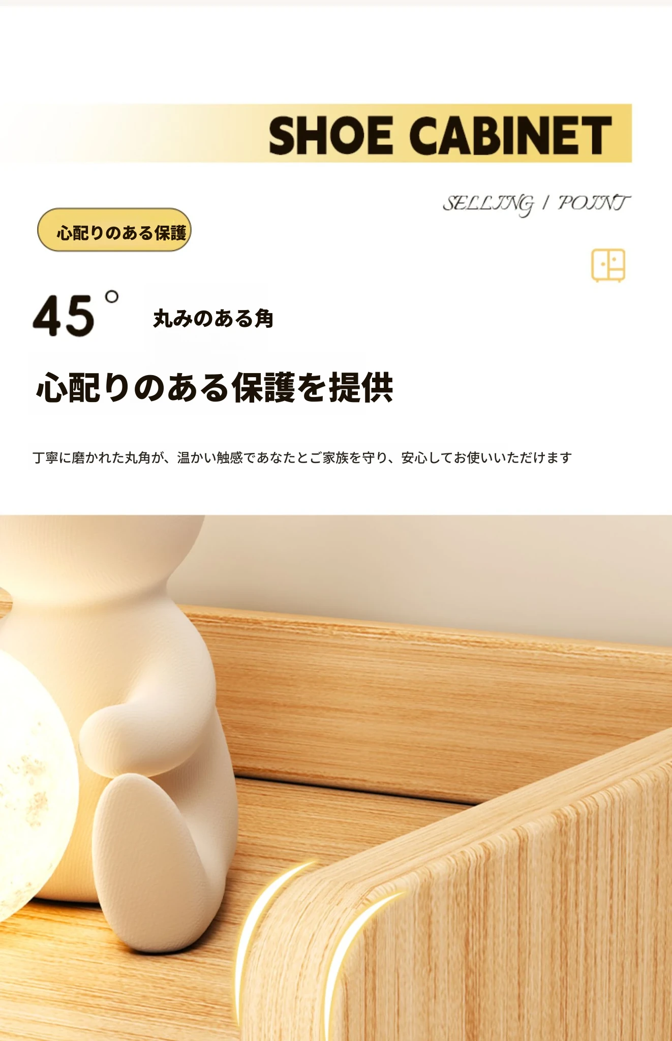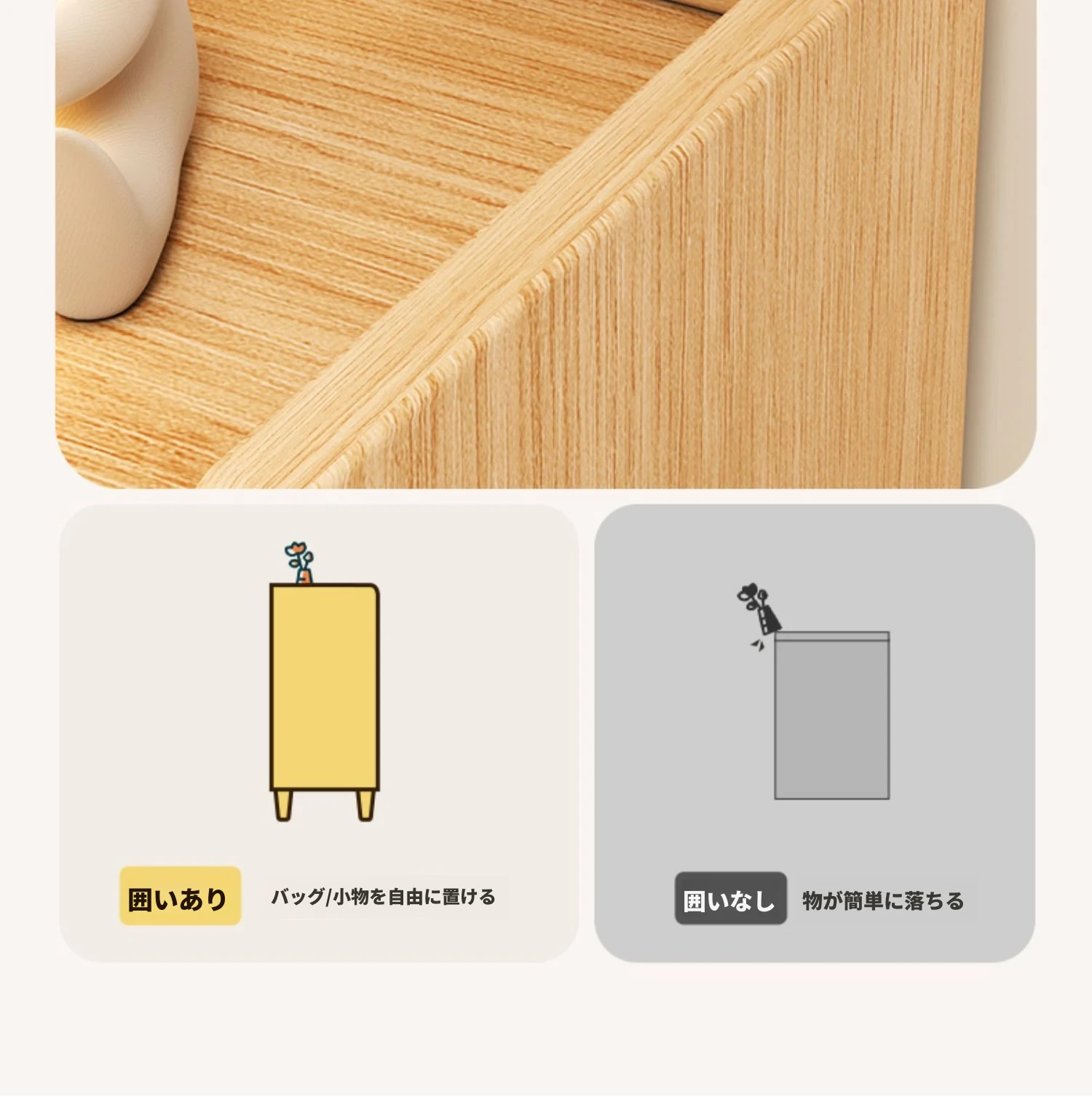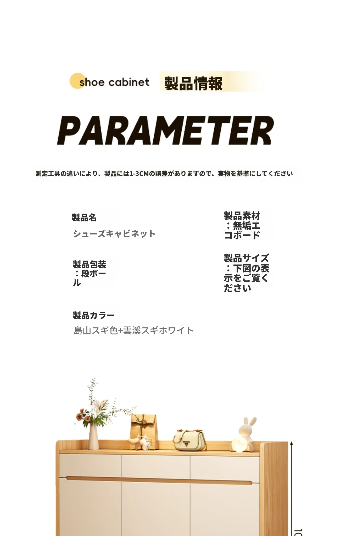 【厚手無垢エコボード格納タイプ】三ドア一引き出し雪松木+雲渓ホワイト90*32*100cm