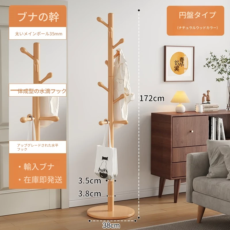 【アップグレード安定ブナ材】ナチュラルカラー円盤型(一体成型水滴フック)