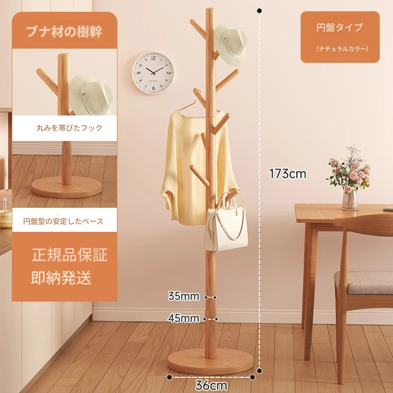 【全ブナ材】ナチュラルカラー三脚型(まるみフック)