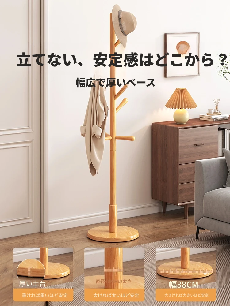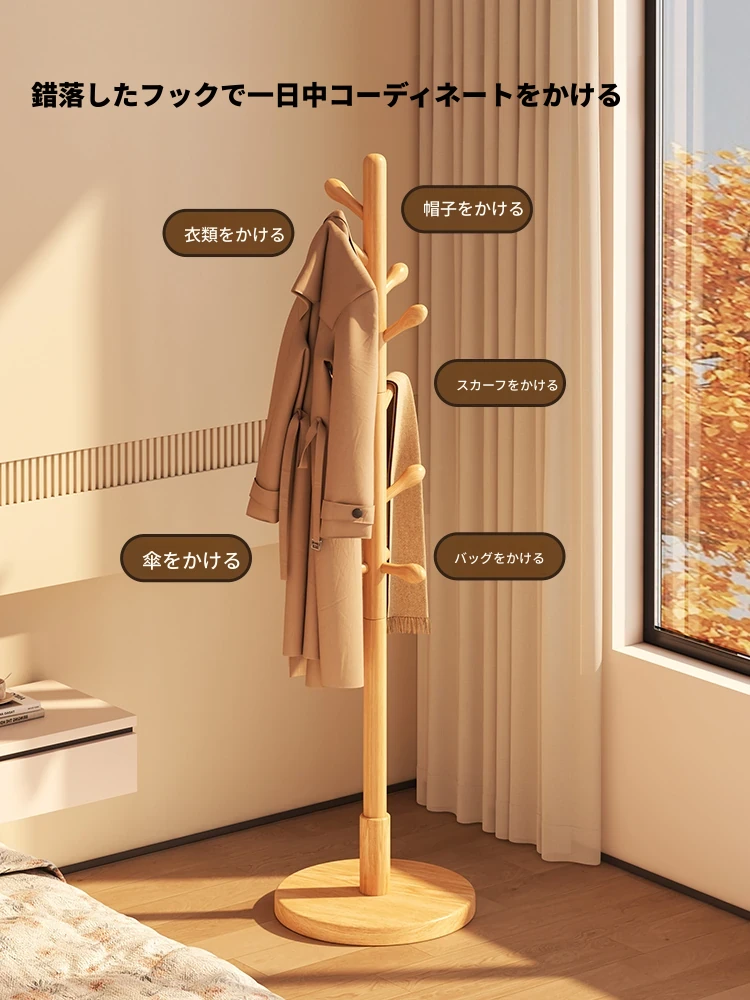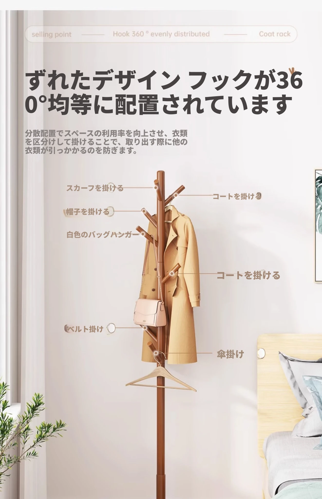 2025年新作!省スペースのスタイリッシュな木製ハンガーラック - 寝室に最適な衣類掛け!おしゃれで機能的、あなたのライフスタイルをアップグレード!
