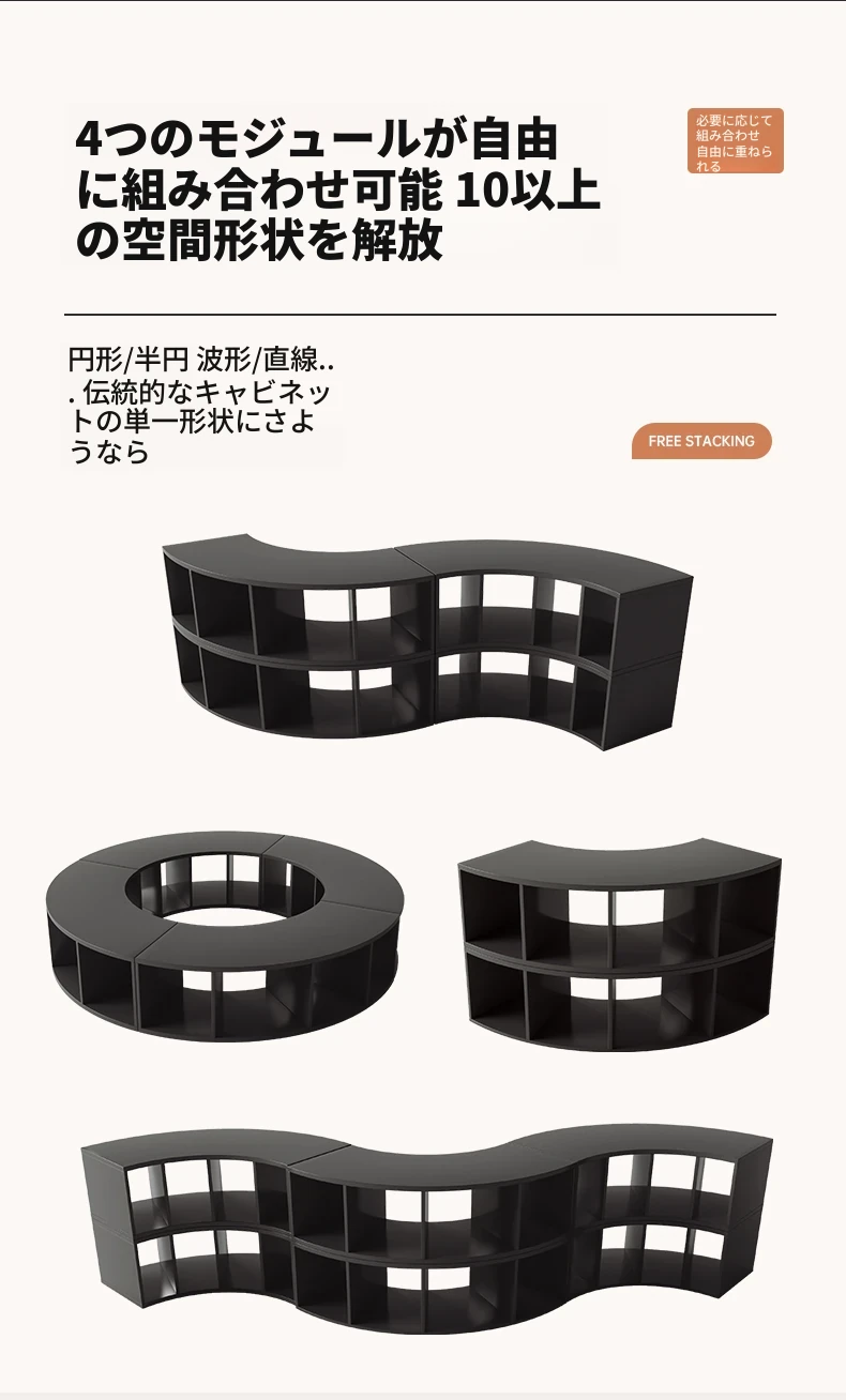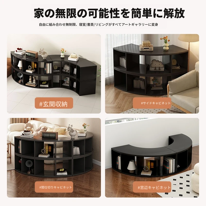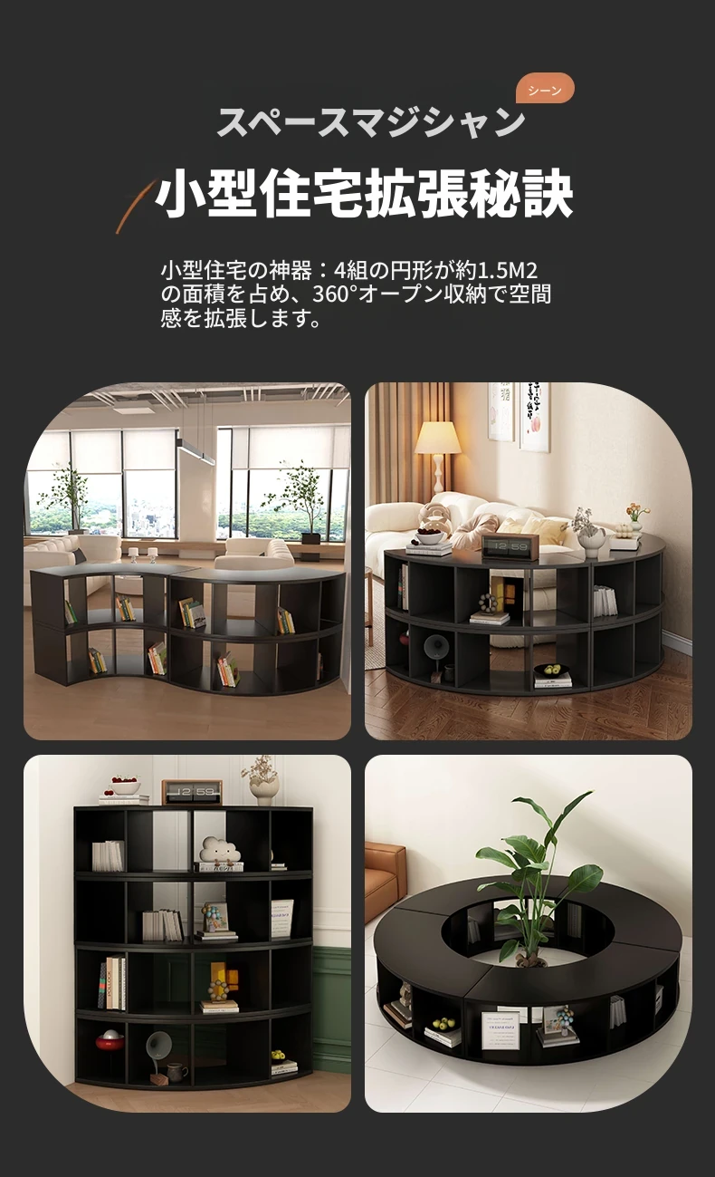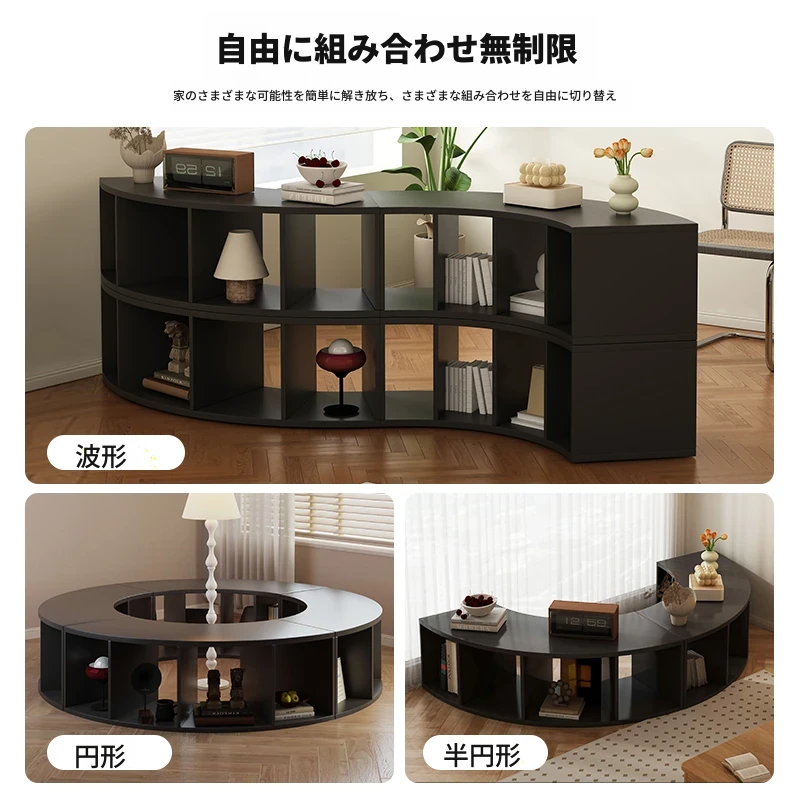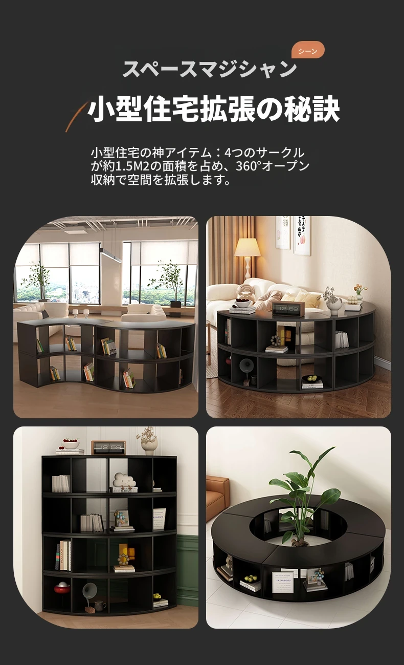 2025年新作!おしゃれなインスタ風異形収納ラック - サークル型書棚でリビングをスタイリッシュに演出!高級感あふれる組み合わせ格子キャビネットで、空間を美しく仕切り、収納力も抜群!