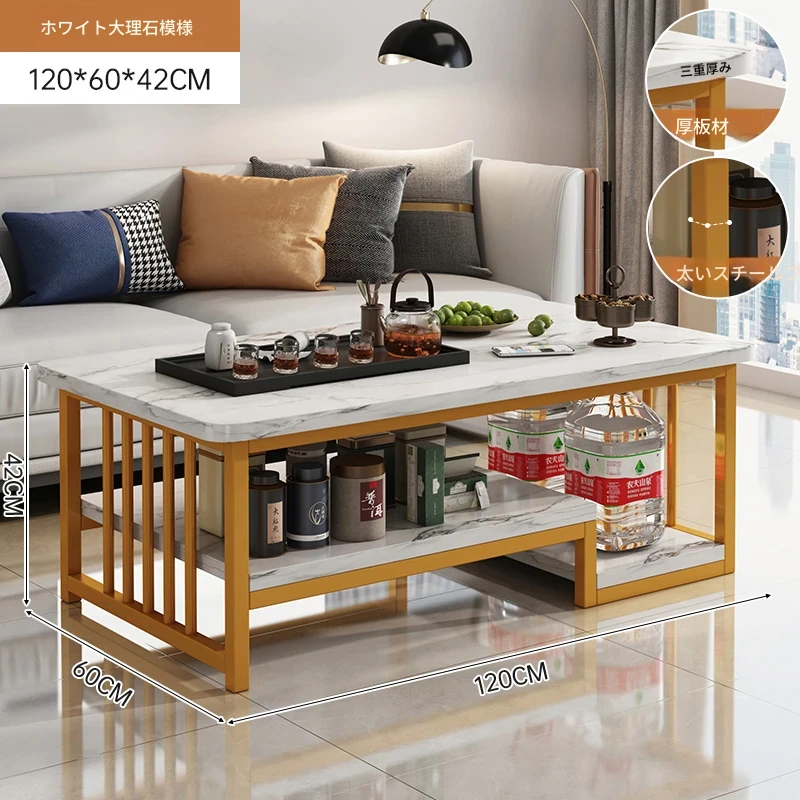 【白い纹理+金のフレーム】長さ120cm 幅60cm 高さ42cm