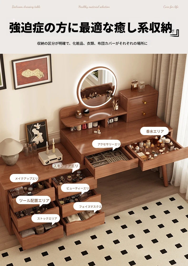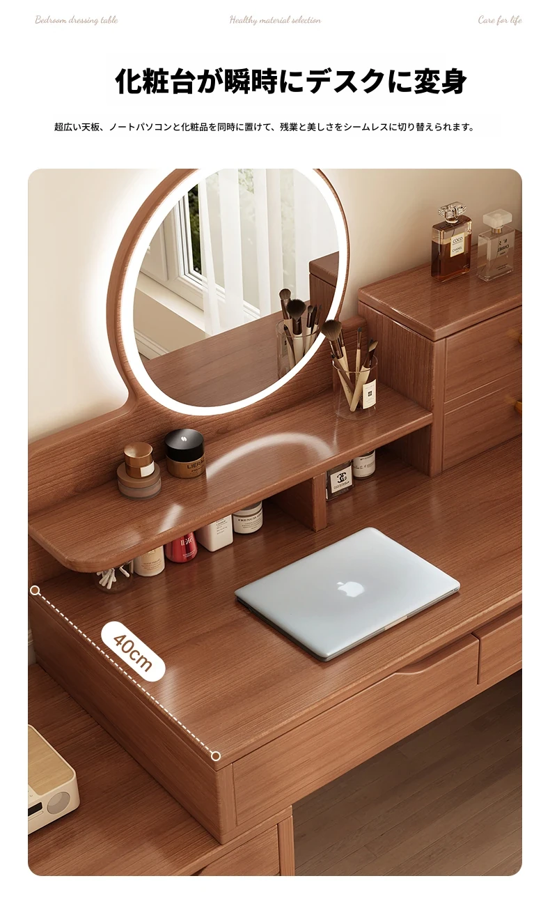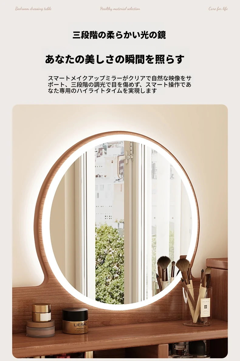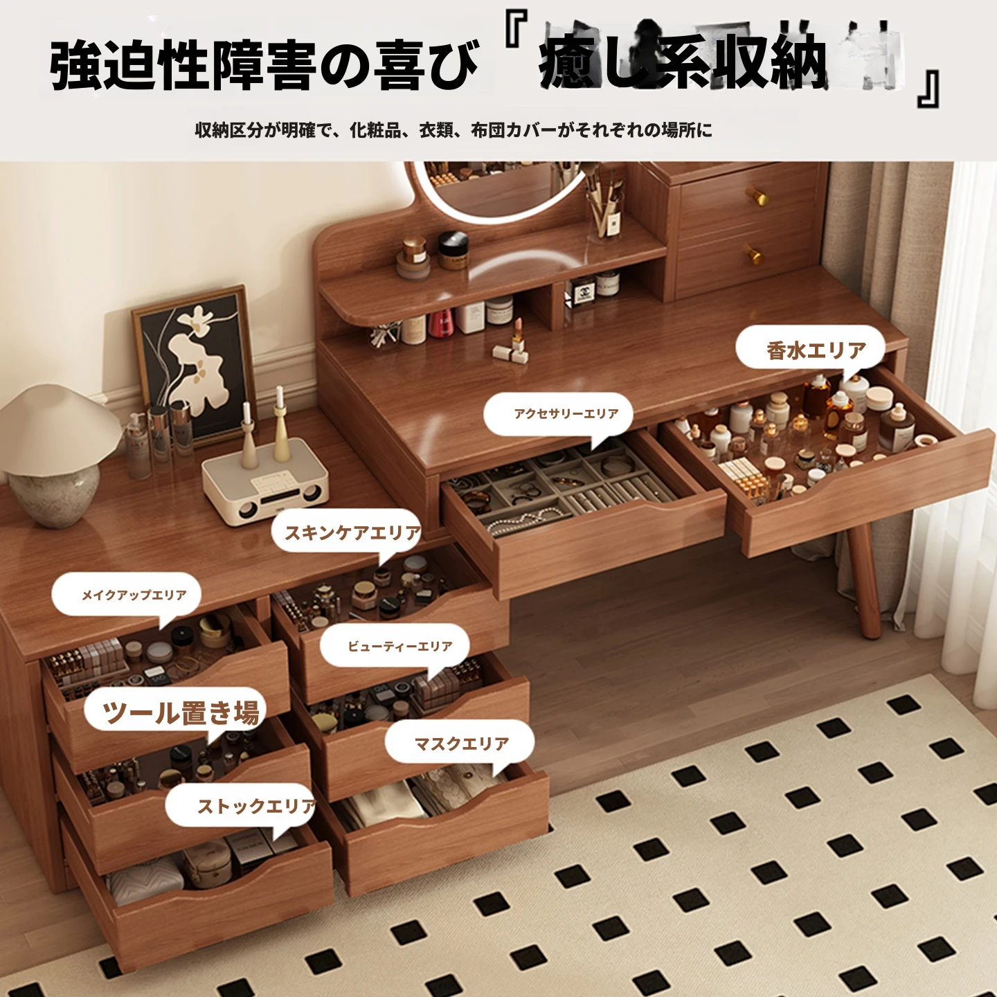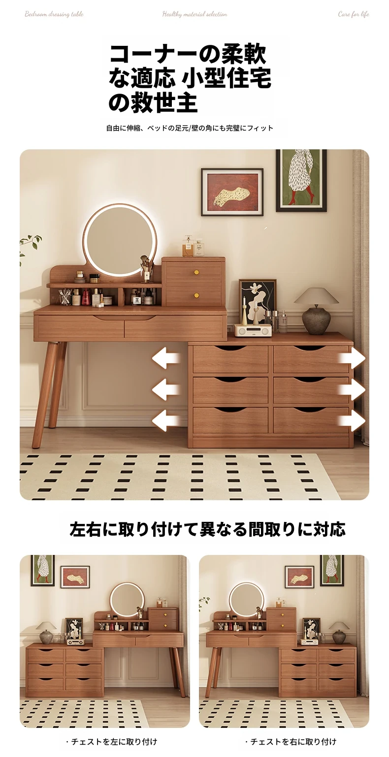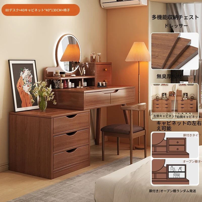 2025年新作!モダンミニマリズムのドレッサー - 新中式デザインの鏡付きメイク台、コンパクトで使いやすいデスク一体型。おしゃれな寝室にぴったりのアイテム!