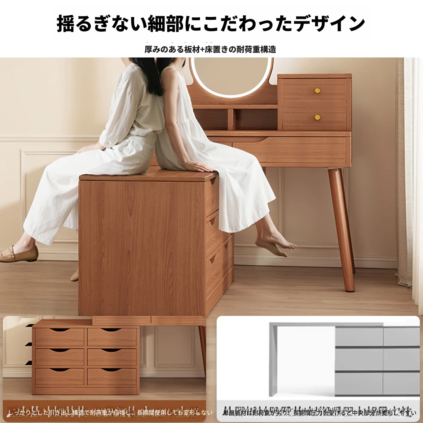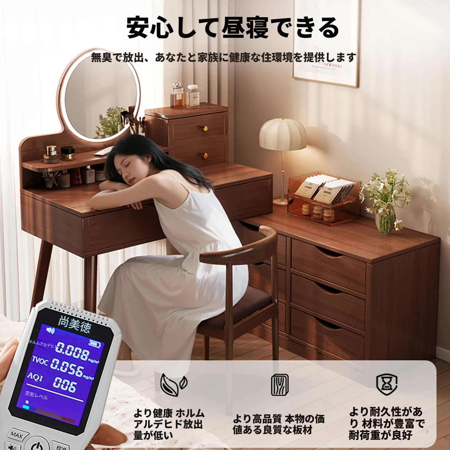 【チェストテーブル+LEDミラー+ファブリックスツール】ウォールナット色 80-150CM
