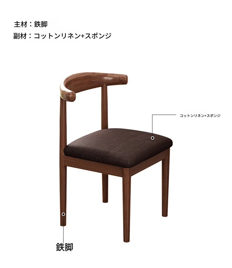 【サイドテーブル+LEDミラー+カウホーンチェア】ウォールナット色 80-110CM