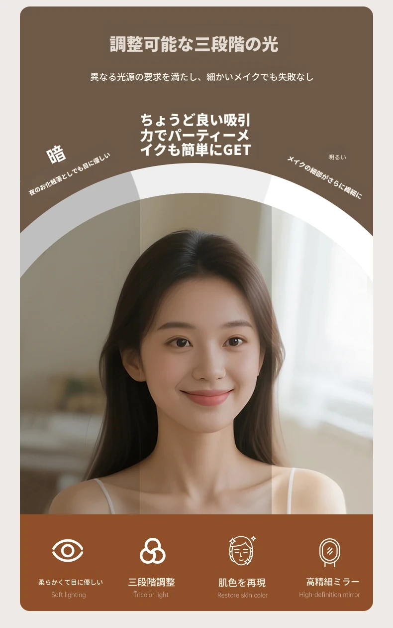 【サイドテーブル+LEDミラー+ファブリックスツール】ウォールナット色 80-110CM