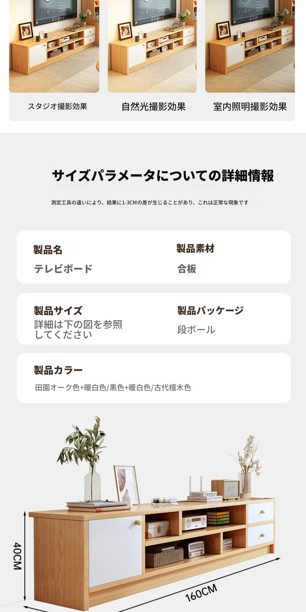 【三段キャビネットタイプ】160CM オーク色