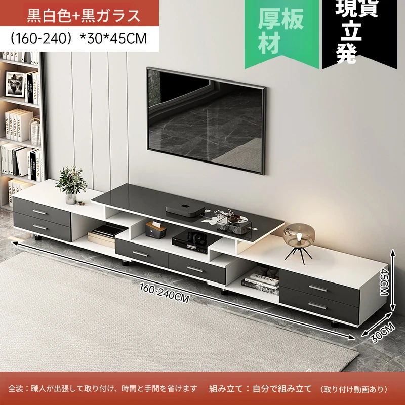 【四抽タイプ】(160-240)cm 黒白色+黒いガラス