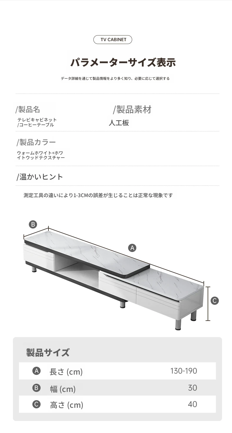 【岩板タイプ】(130-190)cm 暖白色+白い纹理