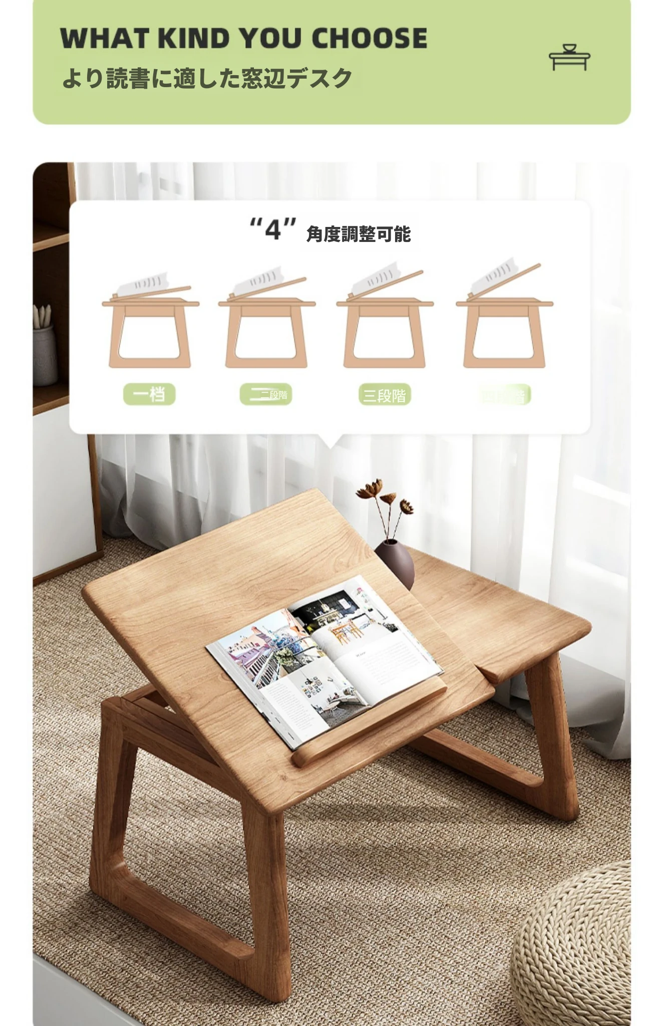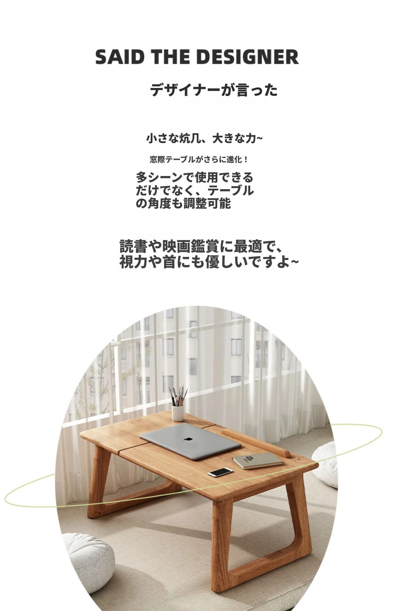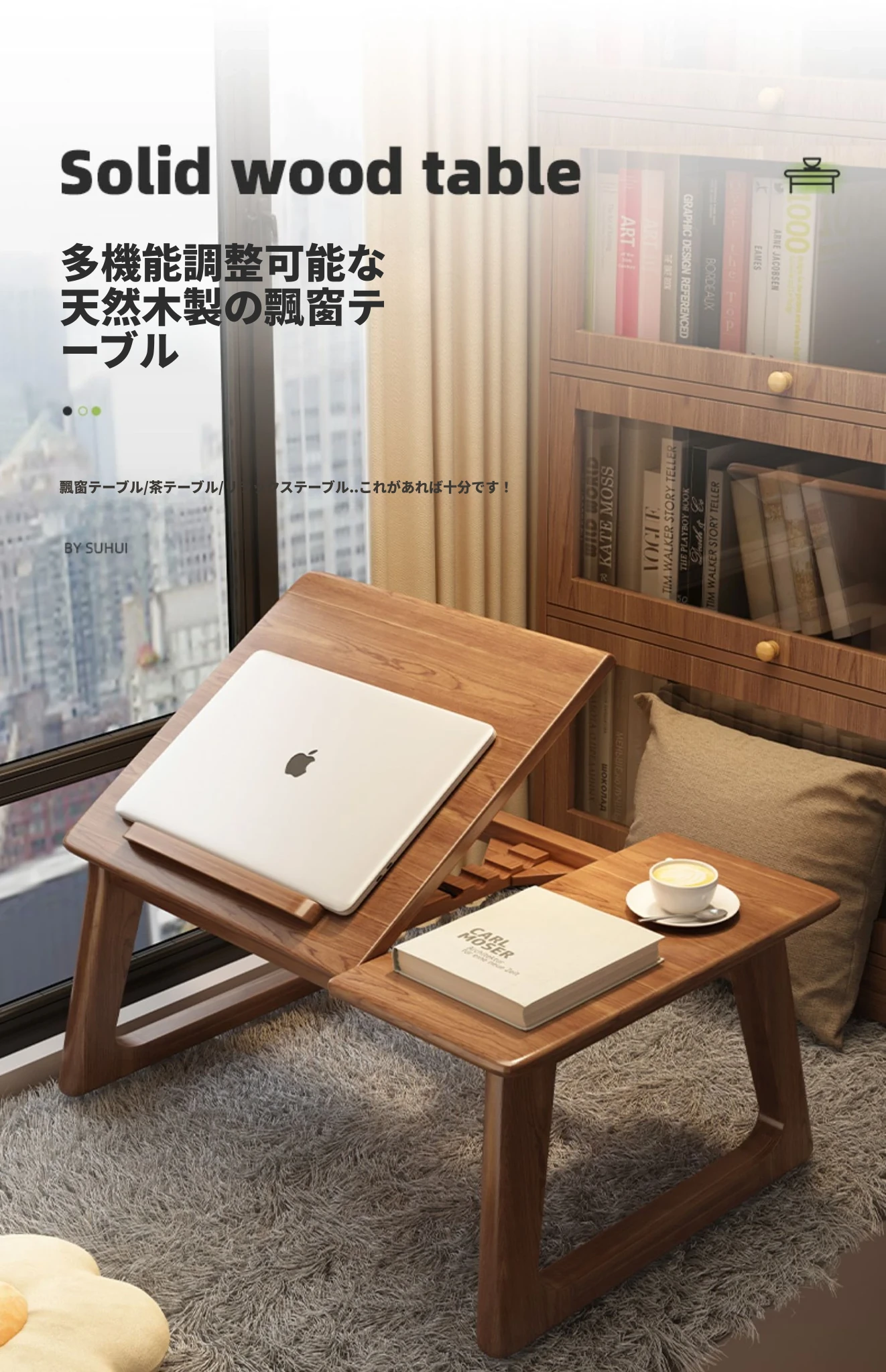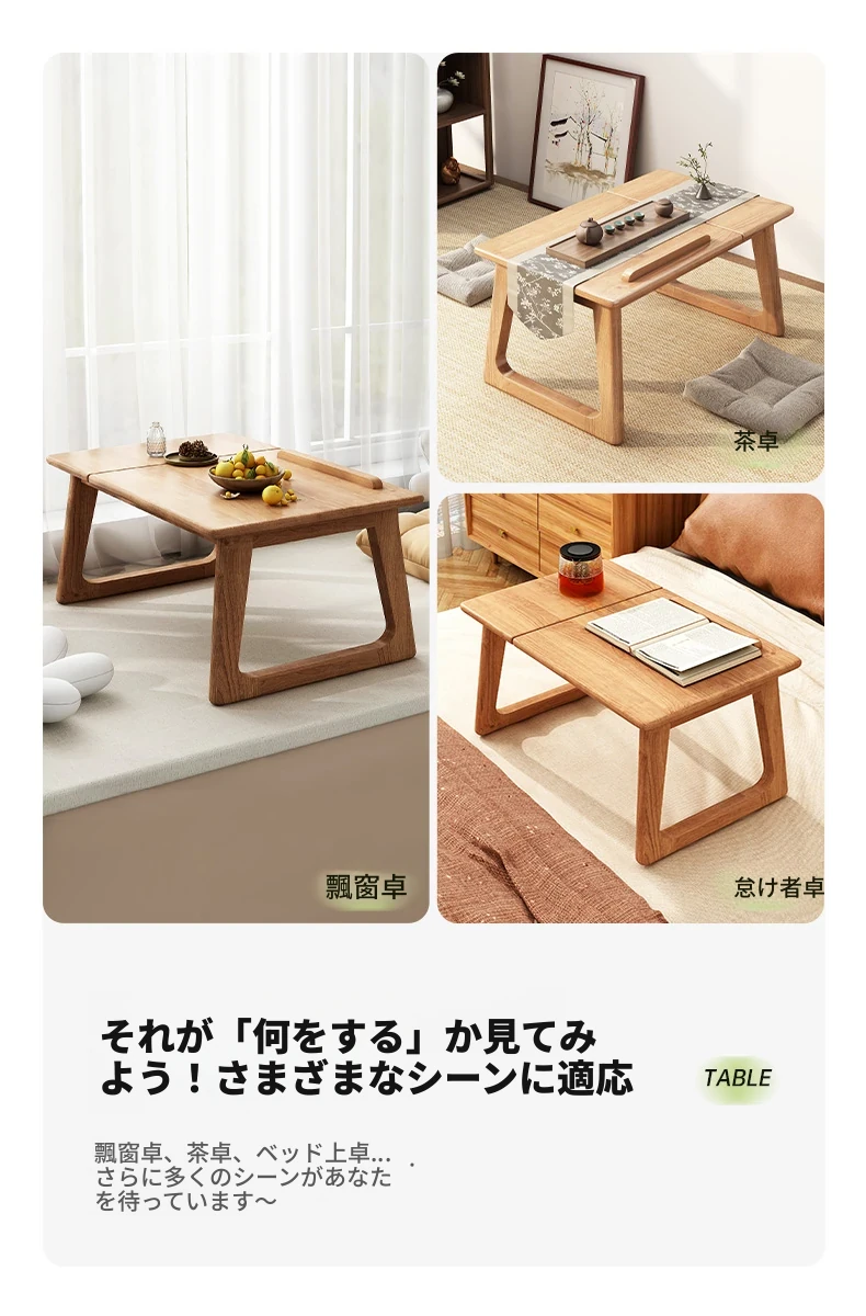 2025年新款!スタイリッシュな無垢材の窓辺デスク。バルコニーにぴったりなコンパクトサイズ。家庭用にも最適な畳や床上で使えるテーブル。おしゃれな書斎や寝室に最適!