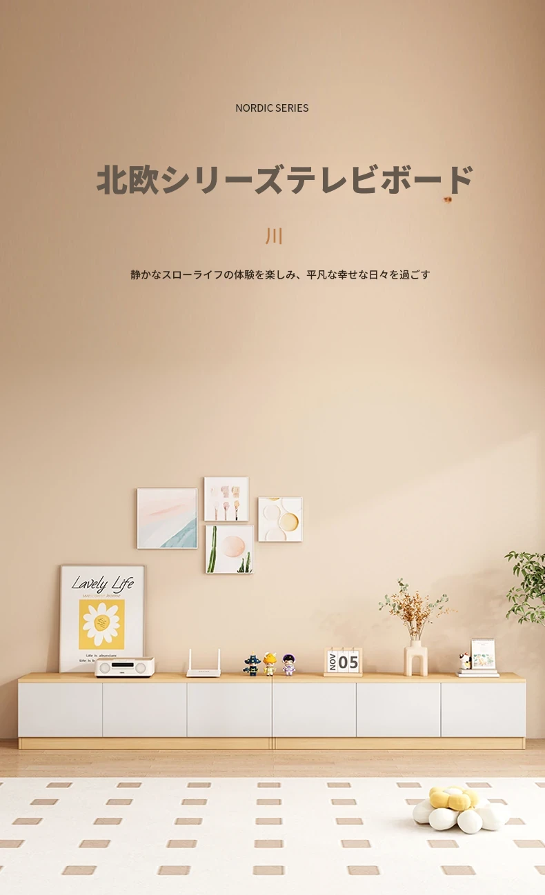 2025年新款!小户型必备的原木风格テレビキャビネット - リビングルームに最適な収納力抜群のテレビ台で、すっきりとした空間を演出!