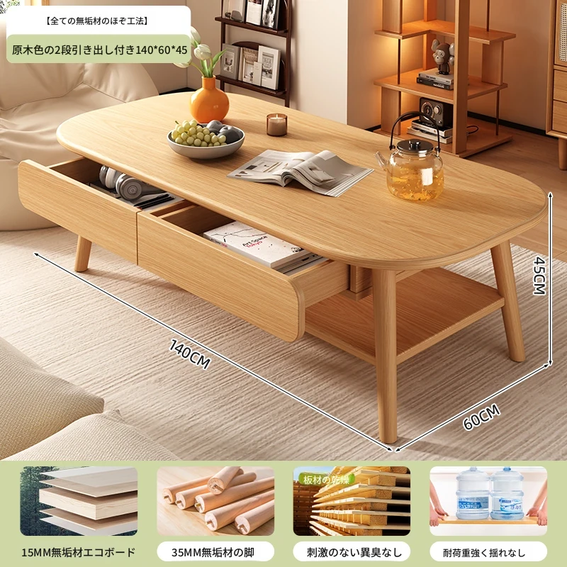 【無垢エコボード】140CM 屿山スギ色◆二段二引出し